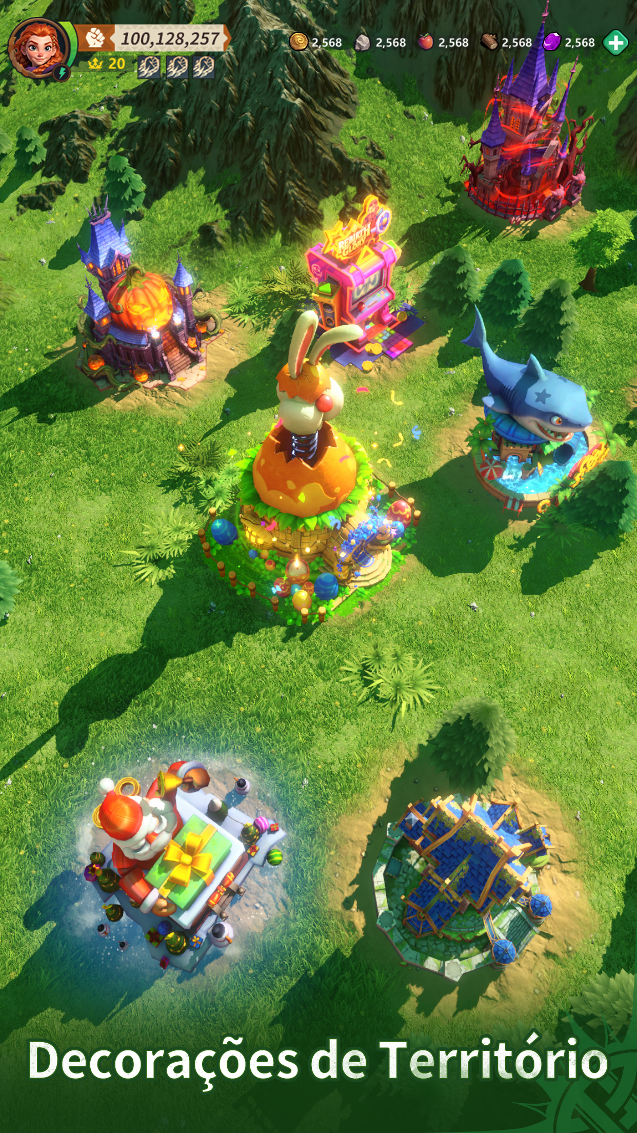 Ampla Variedade de Itens Cosméticos: Com decorações de território, skins de Heróis, caixas de bate-papo e retratos, crie uma Tribo que seja única para você.