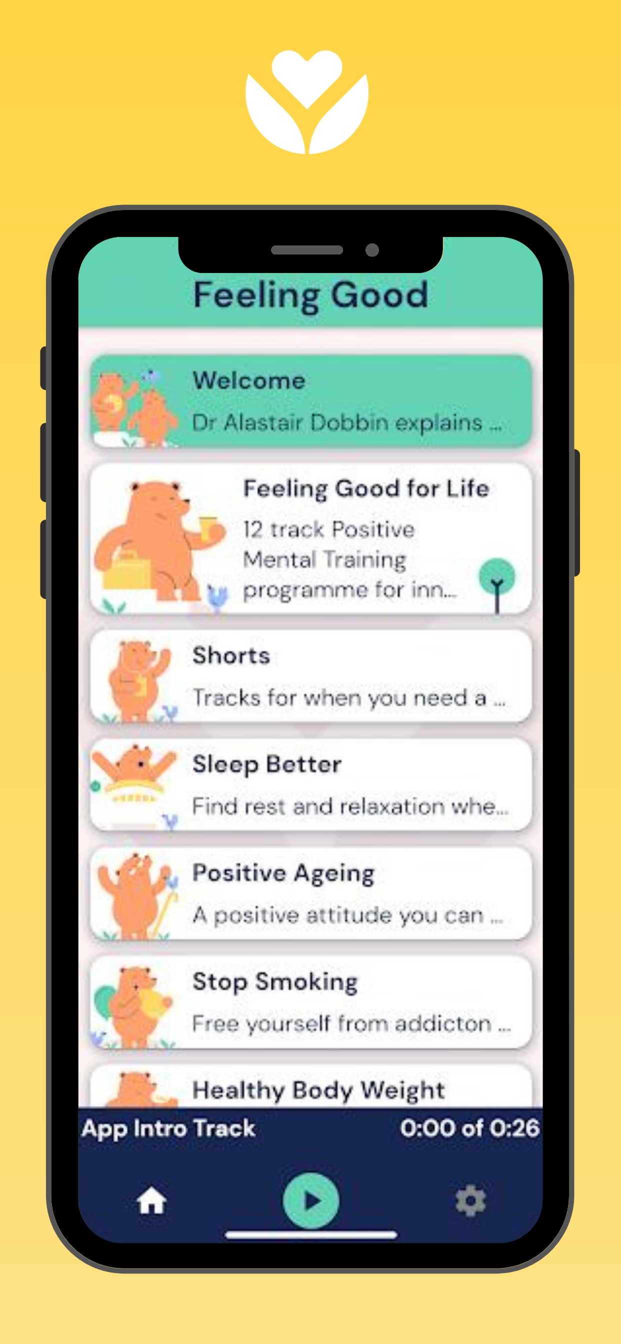 O aplicativo Feeling Good é credenciado pelo NHS digital - uma marca de sua eficácia, segurança e bom funcionamento. O aplicativo é muito fácil de usar, basta conectar seus fones de ouvido e tocar para começar a sentir os benefícios positivos. Centrados em torno do "Treinamento Mental Positivo", esses módulos de áudio combinam exclusivamente relaxamento aplicado com visualizações focadas em objetivos, derivadas das mais recentes técnicas de neurociência e treinamento esportivo olímpico. O método de mudança é a TCC a montante (uCBT), em que as emoções são direcionadas para impulsionar a cognição e a mudança de comportamento. Usando uma abordagem psicológica positiva, as emoções positivas são aumentadas, reduzindo as emoções negativas, em vez da TCC tradicional, que se concentra no pensamento negativo (cognições) para impulsionar a mudança emocional e comportamental. O aplicativo contém o programa cientificamente comprovado Feeling Good for Life, uma série de 12 faixas de áudio focadas na saúde mental para ajudá-lo a desenvolver habilidades essenciais, não apenas para lidar com tensões e tensões mentais, mas para avançar e se tornar mentalmente mais forte e mais resiliente. Este módulo pode ajudá-lo a: * Desenvolva um relaxamento profundo para acalmar rapidamente sua mente e corpo * Construir resiliência para apoiar sua saúde mental e bem-estar * Eleve seu humor, ajudando você a se sentir mais positivo e aliviar os sintomas da depressão * Deixe de lado as preocupações e ajude no alívio da ansiedade * Durma melhor e lide com o estresse com mais facilidade. * Aumente a motivação e a confiança para ajudá-lo a alcançar seus objetivos Também pode ajudar com sintomas físicos de estresse, como dores de cabeça, intestino irritável, fadiga e dor crônica. Melhora sua capacidade de se concentrar em uma tarefa, de se sentir positivo em relação a si mesmo ao conversar com os outros, de ter o melhor desempenho quando necessário. Assim como a TCC tradicional, esses áudios podem mudar seus padrões de pensamento negativo, seu comportamento e gerar sentimentos mais positivos. Assim como a repetição de exercícios físicos aumenta a força muscular, ouvir repetidamente nossos áudios pode aumentar a força mental. Existem outros módulos no aplicativo, para ajudá-lo a dormir melhor, sentir-se positivo em relação ao envelhecimento, parar de fumar, ajudar nos sintomas prolongados da covid e alcançar um peso saudável. Todos contêm as mesmas faixas iniciais de Feeling Good for Life para lhe dar uma boa base. O aplicativo é gratuito para download com acesso gratuito a várias faixas. Desbloqueie todo o aplicativo com um código de referência ou um pagamento único. Personalize sua escolha de leitor e música, incluindo sons relaxantes da natureza. Acompanhe seu progresso de escuta com folhas crescentes e monitore seu humor em 2 e 7 semanas e defina lembretes. A recolha de dados é anónima, não recolhemos nem vendemos dados pessoais identificáveis. Ouvir este aplicativo não substitui o diagnóstico, aconselhamento ou tratamento médico. Recomendamos que você leia as orientações de uso na guia de configuração, antes de ouvir as faixas. Como isso começou: Feeling Good foi usado pela primeira vez no NHS para pacientes com mau humor, estresse e depressão e logo descobrimos que também estava sendo usado pelos médicos e enfermeiros para seu próprio benefício. Pode ajudar com todos os estresses da vida, incluindo problemas de esgotamento e sono. As faixas de Feeling Good for Life começaram como CDs de áudio, quando o Dr. Alastair Dobbin, clínico geral, e a Dra. Sheila Ross, especialista em promoção da saúde, se uniram. Eles queriam ajudar as pessoas a construir uma boa saúde mental e, assim, adaptaram um programa de desempenho dos esportes olímpicos suecos, atraídos por um foco positivo de autodesenvolvimento, em vez de uma abordagem clínica baseada em doenças. Desde então, pesquisas demonstraram sua capacidade de construir emoções positivas e bom funcionamento psicológico, além de recuperação de depressão e ansiedade. O aplicativo é usado dentro do NHS por funcionários e pacientes, em muitas faculdades e universidades para funcionários e estudantes e recomendado na campanha "Every Mind Matters" da Public Health England. Estamos trabalhando para tornar o aplicativo Feeling Good o mais acessível possível para que todos possam usar o aplicativo. Nossa declaração de acessibilidade: https://www.feelinggood.app/feeling-good-app-accessibility-statement/