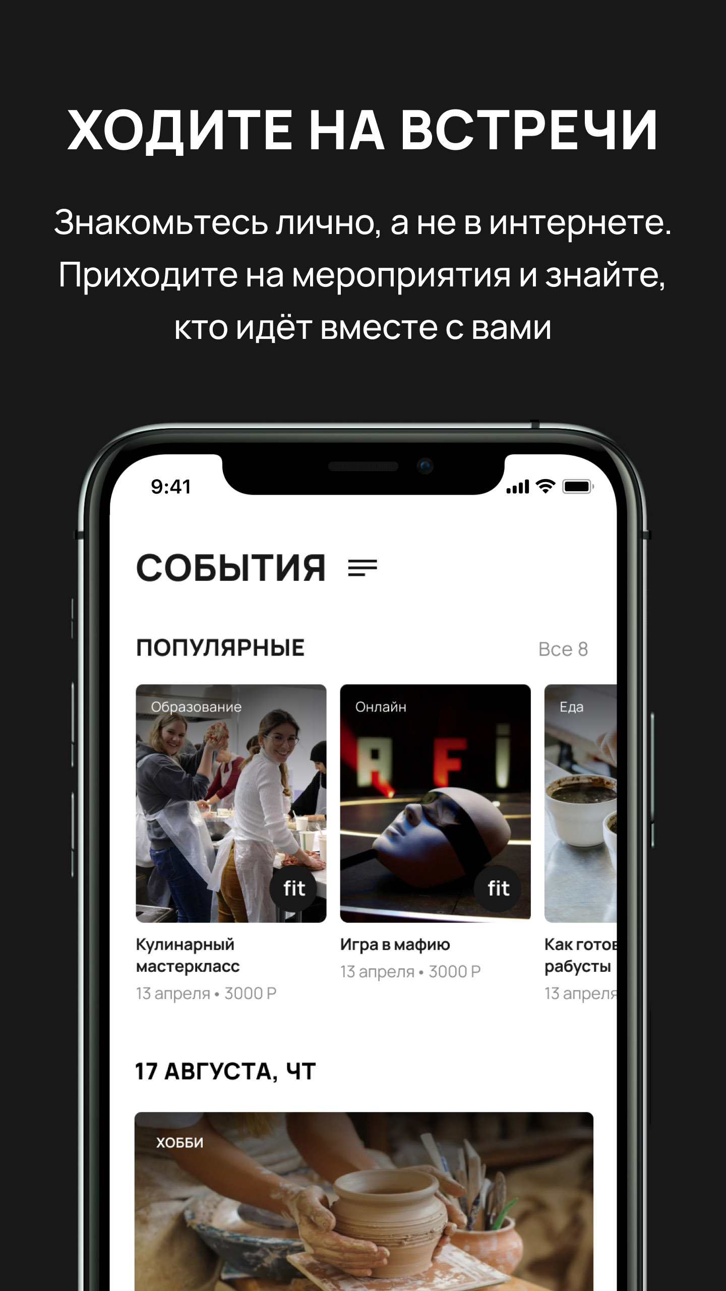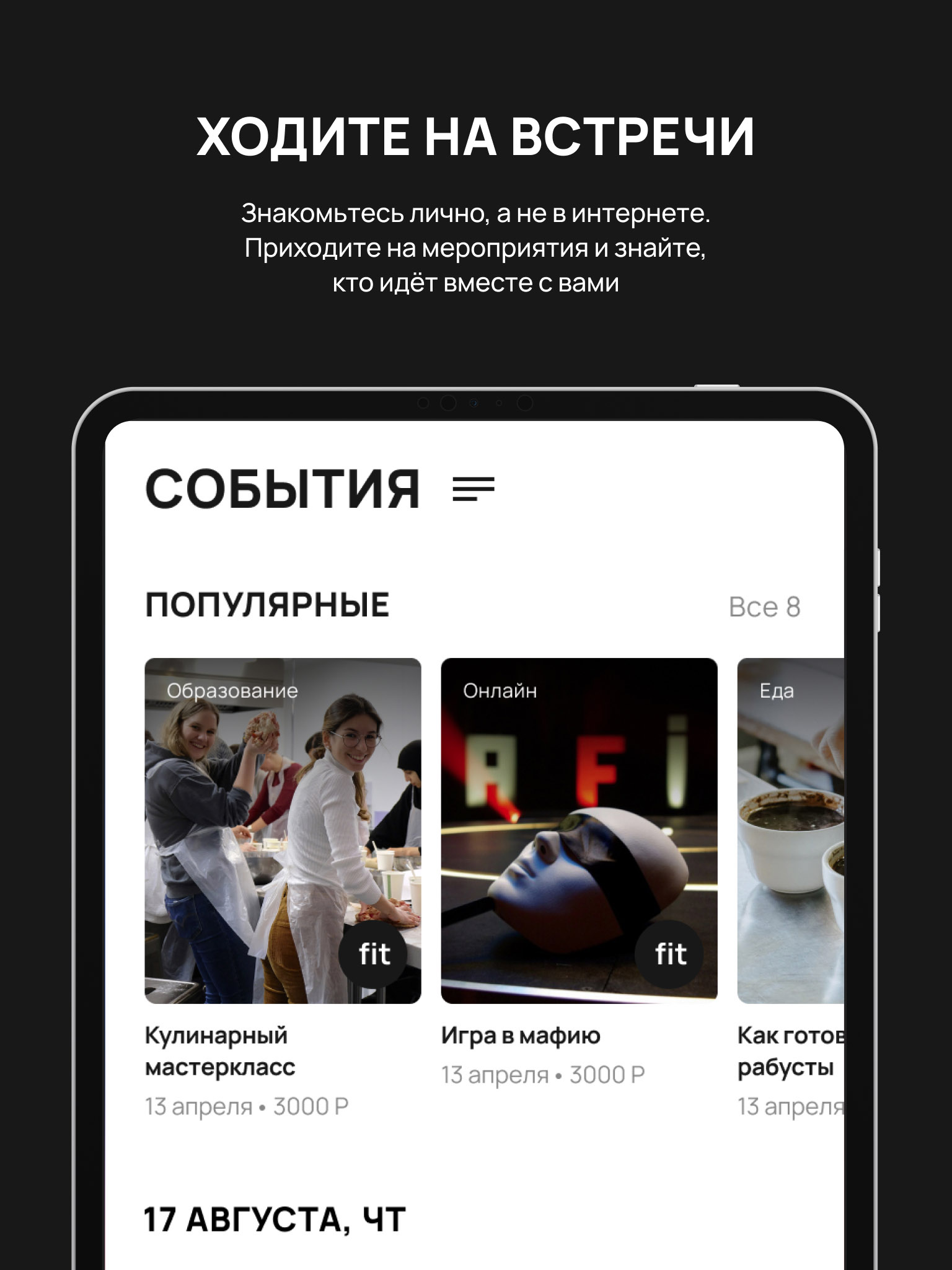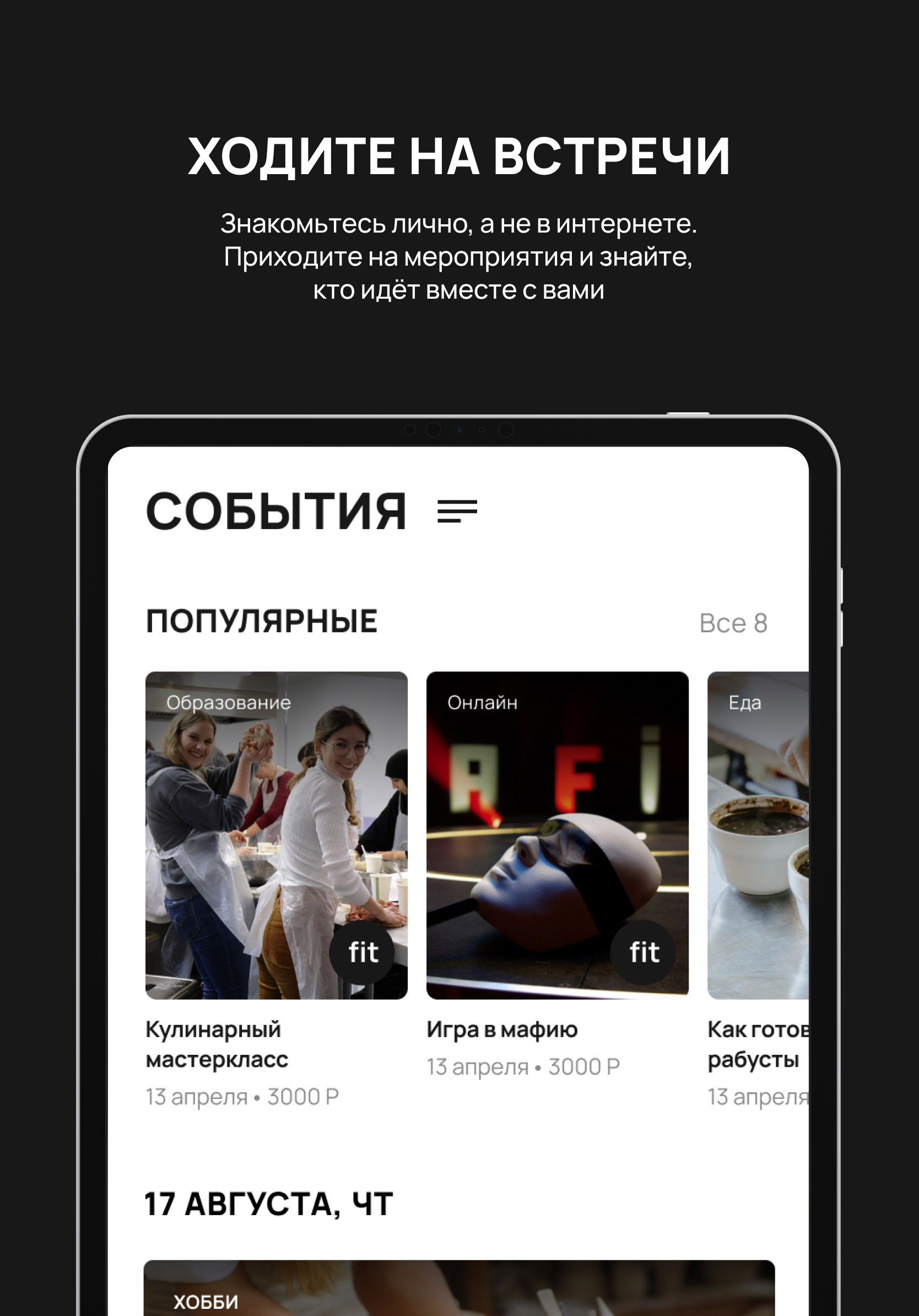 Алгоритм предложит события, куда собираются подходящие вам кандидаты.