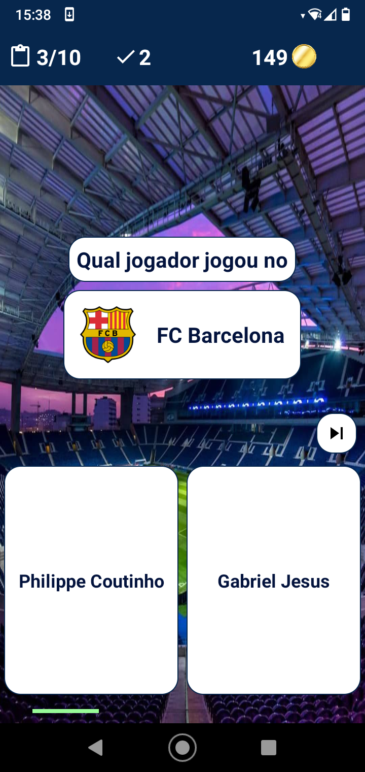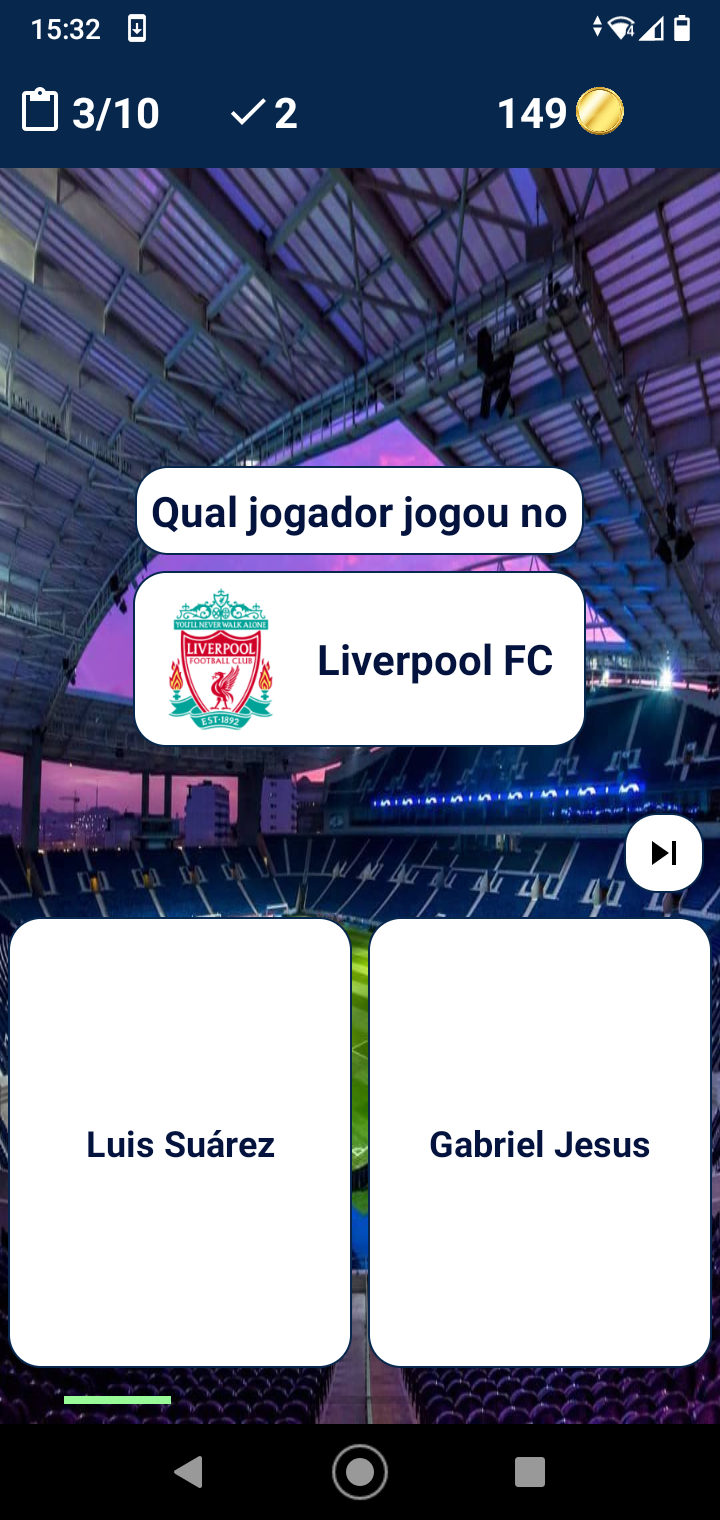Football Quiz tem milhares de perguntas sobre mais de 4000 jogadores de futebol de todo o mundo. Existem vários modos de jogo: - Jogo Simples -> Centenas de níveis sobre jogadores de futebol atuais de todos os principais clubes e países. - Jogo Multiplayer: Jogue ao vivo contra jogadores de todo o mundo e tente ser o GOAT - Quiz do Dia: Todos os dias, responda ao novo Quiz do Dia e compita com outros jogadores Existem centenas de níveis: - Melhores jogadores de futebol do mundo - Jogadores da UEFA, CONMEBOL, CAF, CONCACAF, AFC - Premier League, Liga, Serie A, Bundesliga, Ligue 1, Liga Nos e muito mais - Nível de países: Inglaterra, Brasil, Argentina, Espanha, França, Itália, Alemanha, Portugal, Holanda, Bélgica e muitos mais! - Níveis de clubes: Real Madrid, FC Barcelona, Liverpool FC, Manchester United, Manchester City, Bayer Munchen, Paris SG, FC Porto, Benfica e muitos mais!