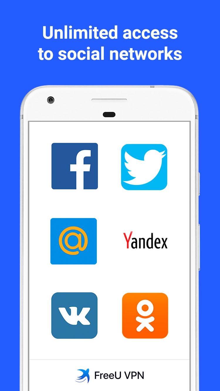 VPN ilimitada para o seu dispositivo Android. Sinta a liberdade na Internet com o FreeU VPN. Tenha acesso a redes sociais, sites, aplicativos e ao seu e-mail. Use a Internet sem limites e restrições. O VPN FreeU é gratuito: - Velocidade ilimitada - Duração ilimitada da sessão - Não são necessários pagamentos Benefícios do FreeU VPN: - Acesso a redes sociais, como: Facebook, Twitter, Vkontakte (VK), Odnoklassniki e outras. Use as redes sociais de qualquer lugar e fique em contato com seus amigos, parentes e colegas. - Acesso seguro a sites, aplicativos e seu e-mail. Navegue na Internet sem quaisquer restrições e limites. - Navegação anônima na web. Oculte o seu endereço IP e obtenha proteção para os seus dados pessoais. - Proteção para sua privacidade. Proteja sua identidade e informações privadas de serem roubadas. - Proteção de dados durante o uso de hotspots wi-fi. Fique protegido contra roubo de dados, mesmo em locais públicos. Os hackers não conseguirão interceptar os dados do seu cartão de crédito ou qualquer outra informação. - Muitos locais para surfar. Alcance mais conteúdo usando locais fornecidos pelo FreeU VPN: EUA, Cingapura, Holanda, Hong Kong, Índia, Luxemburgo. - Suporte ao cliente 24 horas nos sete dias da semana. Nossa equipe de suporte ao cliente está sempre feliz em ajudá-lo. Você pode usar o VPN FreeU gratuitamente, mas se quiser usar recursos extras, pode facilmente atualizar para uma assinatura premium que oferece: - Acesso total à Intermet - Maior variedade de países para surfar FreeU VPN oferece liberdade de Internet, navegação ilimitada e segura na web, capacidade de abrir redes sociais, acessar seu e-mail e desbloquear sites. Fique em contato com seus amigos, parentes e colegas. Comece a usar o FreeU VPN agora mesmo.