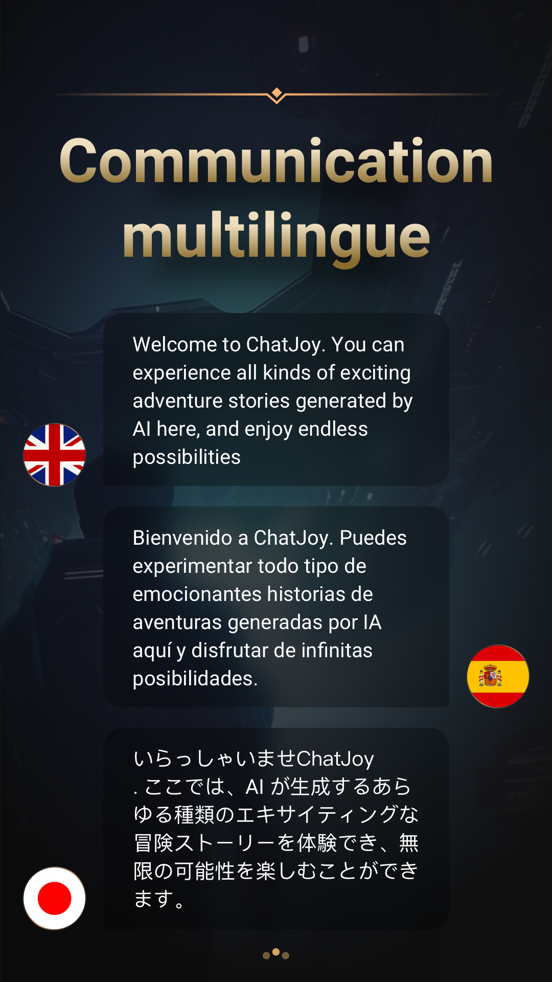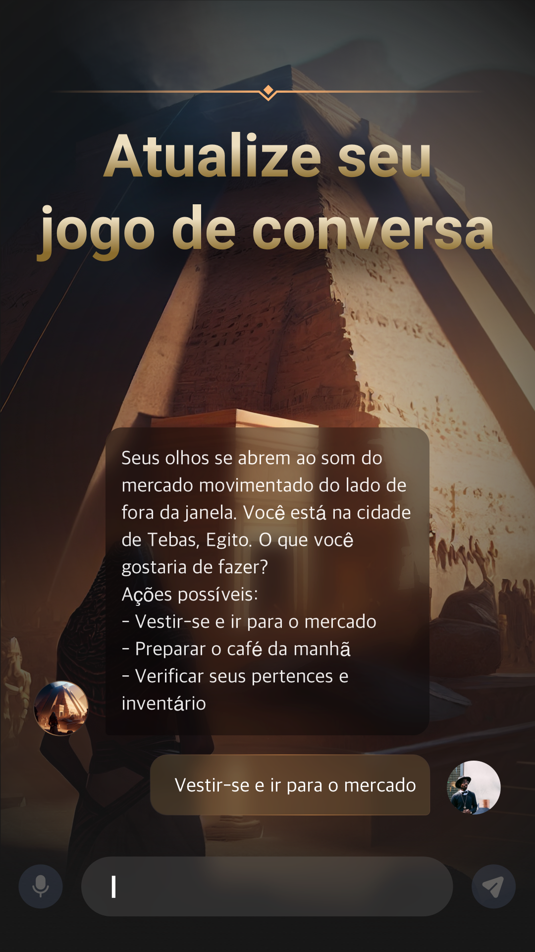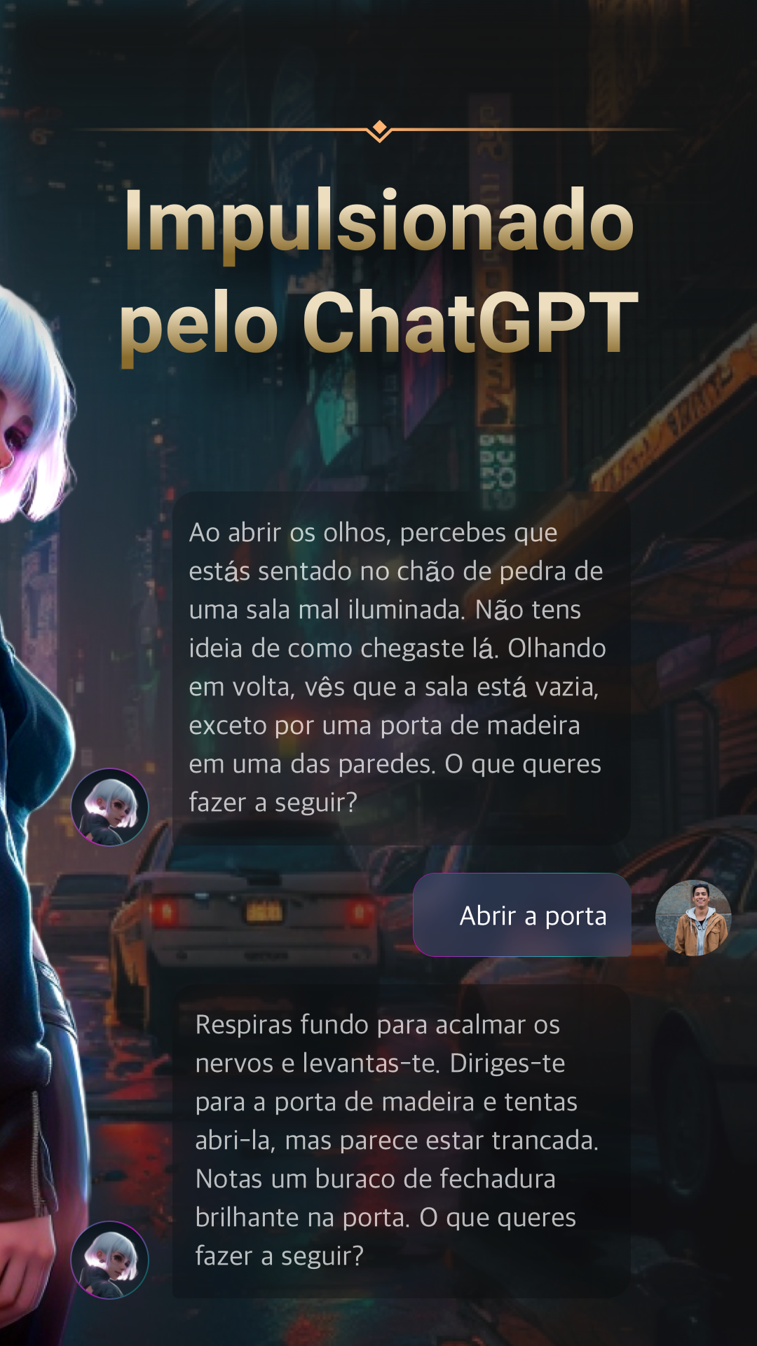 ChatJoy é um jogo de aventura (rpg) baseado em texto, aberto e artificialmente inteligente, alimentado pela tecnologia ChatGPT e GPT-4 e GPT-3. Explore um mundo desconhecido e torne-se o personagem que quiser com o ChatJoy, e experimente o jogo de aventura RPG mais autêntico! Bem-vindo ao novo jogo de aventura do ChatJoy AI chatbot - Hero's Legend: Kingdom Hearts! Neste jogo baseado em texto, você explorará um mundo aberto e explorará livremente templos antigos, ilhas do céu e outras ruínas antigas. Como guardião, você embarcará em uma jornada desafiadora e de resolução de quebra-cabeças para resgatar a princesa e impedir o plano das forças do mal. À medida que sua aventura avança, você descobrirá muitos segredos incríveis, alguns dos quais podem até levá-lo às lágrimas. Kingdom Hearts oferece inúmeras surpresas e possibilidades para você se desafiar e embarcar em aventuras sem fim! Um dos recursos mais interessantes do ChatJoy AI Chat Bot é o recurso de aventura. O recurso de aventura de RPG do ChatJoy é uma ótima maneira de escapar para um mundo diferente e se divertir com amigos ou outros usuários. Se você prefere a emocionante aventura de explorar uma terra desconhecida, o mistério e a intriga da antiga mitologia egípcia ou a emoção de explorar as profundezas do espaço, o ChatJoy desenvolvido pela ChatGPT tem algo para todos. Além de seu recurso de aventura, o ChatJoy conduzido pelo ChatGPT também fornece aos usuários acesso ao Livro da Sabedoria - um recurso valioso para quem busca orientação e conselho. O Livro da Sabedoria é um repositório de conhecimento que você pode acessar a qualquer momento para obter ajuda com seus problemas ou preocupações. Esteja você procurando inspiração, motivação ou respostas para as grandes questões da vida, o Livro da Sabedoria está lá para ajudá-lo. Além disso, o uso da tecnologia ChatGPT do ChatJoy também oferece uma variedade de recursos úteis, incluindo entrada de voz e conversão de fala em texto, para que você possa conversar com facilidade, não importa onde esteja. Além disso, você pode exportar seus registros de bate-papo para referência futura ou apenas para guardar como lembrança. Por fim, o ChatJoy está em constante evolução e aprimoramento graças à tecnologia de ponta de IA que o alimenta. À medida que você interage com o ChatJoy desenvolvido pelo Chat GPT e fornece feedback, os algoritmos de IA aprendem e se adaptam, levando a uma experiência de bate-papo mais personalizada e envolvente para você. Em conclusão, o ChatJoy AI Chat Assistant, alimentado pela API do ChatGPT e GPT-4, o mesmo modelo usado no produto ChatGPT, é um aplicativo de bate-papo inovador e emocionante, desde seu recurso de aventura personalizado até seu útil Livro da Sabedoria e tecnologia avançada de IA, ChatJoy AI friends tem tudo o que você precisa para desfrutar de uma experiência de bate-papo divertida e gratificante. Experimente o AI Chat Bot ChatJoy e embarque em uma aventura feita sob medida para você! Isenção de responsabilidade - Este aplicativo não é oficialmente afiliado a terceiros, nem é permitido fazê-lo. Este aplicativo fornece apenas uma interface móvel para interagir com o AI Chat. - Este não é o Chat GPT, não estamos de forma alguma associados ao OpenAI, ChatGPT ou seus afiliados. - Não estamos de forma alguma associados a Quillbot, Grammarly, Wordtune, Jasper AI, Copy.AI, Rytr, Ginger, AI Writer, Writesonic, Anyword, Hyperwrite, ChatGPT ou suas afiliadas. - Não coletamos ou armazenamos nenhum dado usado no aplicativo.