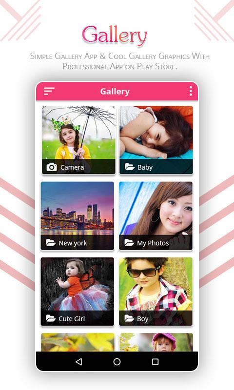Let's having Modern Gallery with unlimited photos grid & video gride. free phone gallery along with video player, forget about old gallery utilize free new gallery for any supported android versions Animated Effects with photo, My Roll Gallery effects on photo. beautiful hot collection of gallery of smart phone, its changing gallery for kitkat, Nought gallery, marshmallow gallery, lollipop gallery and have new one. gallery security is most important for any mobile, The Gallery App which can protect your gallery media collection with high security pin/password pravacy protection free. Track your gallery with password security for unknown person using your mobile. The Smart Gallary app supports all the popular image formates like JPEG, GIF, PNG, PCX, TIEF, WMF, ICO, TGA, BMP. HD photo Gallery is not only a picture browsing tools, but also has the intelligent photo editer functions. You can quick and easy to access all your media(photo and video) files by secret photo protester app and also 3D Gallary app includes so many gorgeous 3D effect. It has utilized all advantage of your phone or tablet. You can easily hide your personal data through Secret album lock and Data vault manager. Digital Gallery is a free photo gallery with smooth gallery user interface and best innovative display. Private Photo Vault allows you to lock pictures in normal photo albums as well as password protected photo albums. Creating your own personal photo safe. Smart image Gallery can also show every detail of an image and provide multi-mode for you to display photos . Safe Gallery is the best way to add a special effects to your photos , make them special and more original. HD image gallary is Free, Safe, Simple, Manage your photos and videos efficiently and easily. Free Customization Gallery is the best way to add a special effects to your photos , make them special colorful wallpapers collection Gallary. In only a few seconds an amazing photo collage is ready, absolutely free with Photo voltaic Gallary. Key Features ** Photos ** - Create Albums and choose best photos of yours into secret folder. - Selfie Camera photo albums. - Able Grid Photo view. - Edit gallery pics. - Beauty Camera Effects on favorite gallery images. - Create effects like photo filter effects based on device. - Photo Slideshow, best animation for photo slide show in gallery. - Move files,delete, copy & paste. - Multiple file selections available. - Zoom in zoom out option. - Photo sorting unlimited. - Sort by, Name, date, Ascending, size, type, Descending etc. - Use as option to set wallpaper on your photo, contact profile pics. - Share photos to social networks. - rename files. ** Security Lock ** - Hide photo, Albums, videos - Hidden folder can view by security lock. - Create Privacy lock for hidden data. - Personal video & lock for private hd video. - Hide Secret photo. - password lock for gallery collections. - Password on show hidden file - Special feature which can not show folder to unknown person. ** gallery with video player ** - In-build video player for gallery. - HD video player with any video. - Share video to social network from gallery.