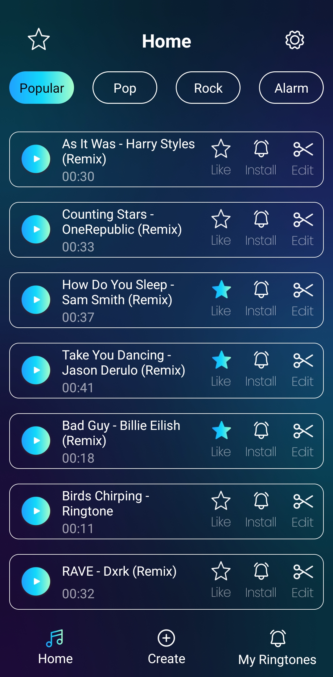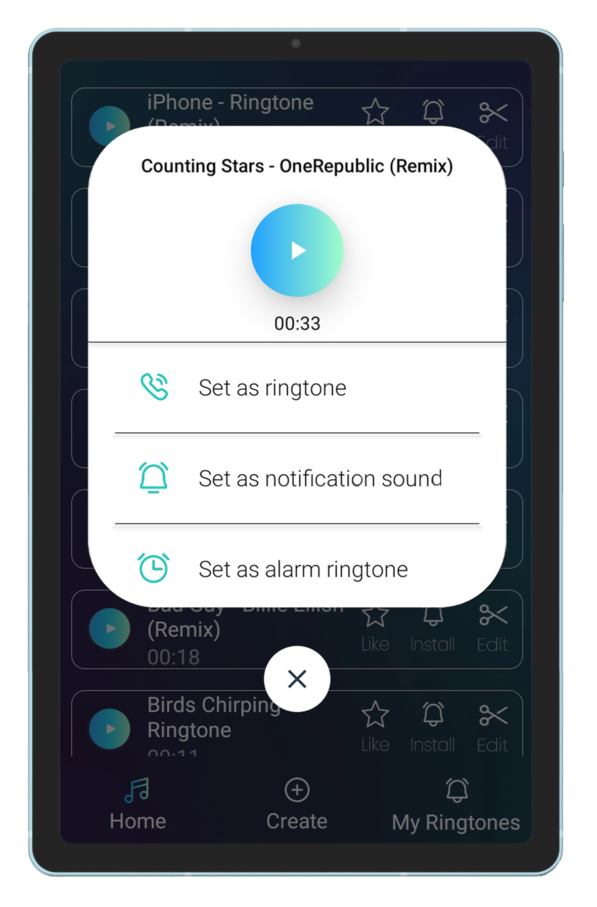 *** - Defina suas músicas recém-criadas como sons de notificação ou alarmes de telefone personalizados;