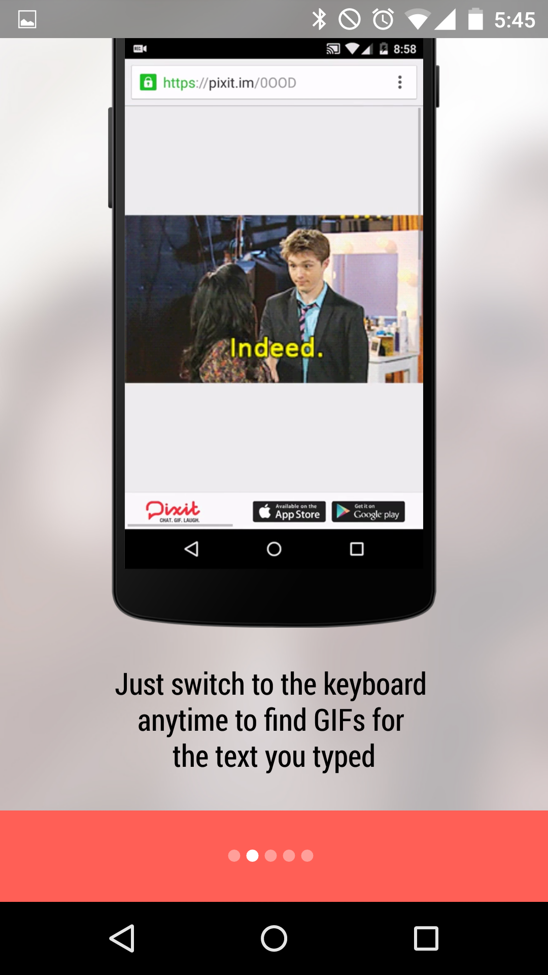 • Unique search feature which uses your existing inputs. All you need to do is switch to the GIF keyboard after you've typed a text – the right GIF is already be there!