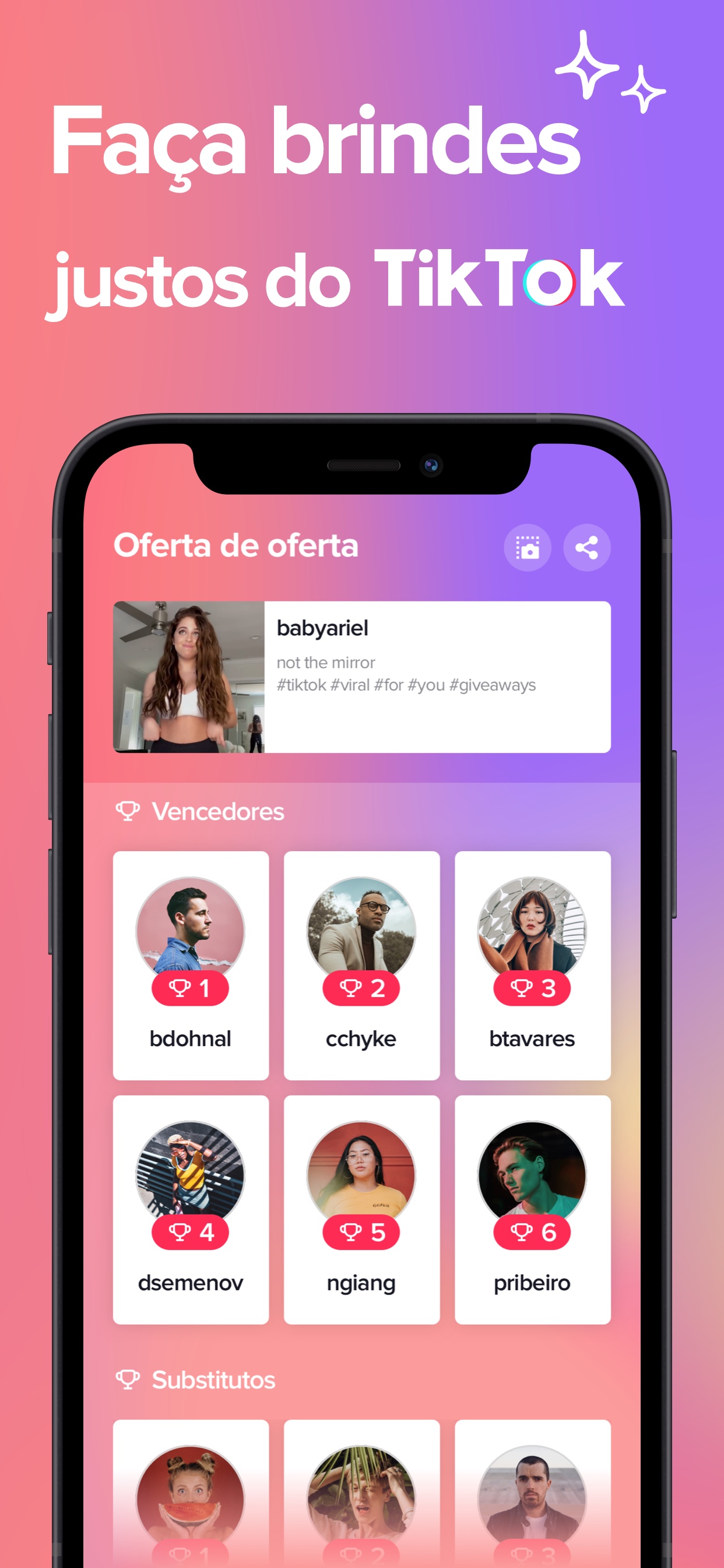Escolha de forma rápida e fácil um vencedor para brindes do TikTok em três etapas. Copie todos os comentários de uma postagem do TikTok em nosso seletor de brindes gratuito e, em seguida, clique em “Selecionar vencedor” para escolher seu vencedor aleatório. Elimine o incômodo de concursos de legendas de fotos ou brindes nas mídias sociais usando nossa ferramenta. Se você deseja recompensar seus seguidores fiéis com um prêmio ou manter seus clientes satisfeitos, o Sortear TikTok Comentarios é a melhor ferramenta para você!