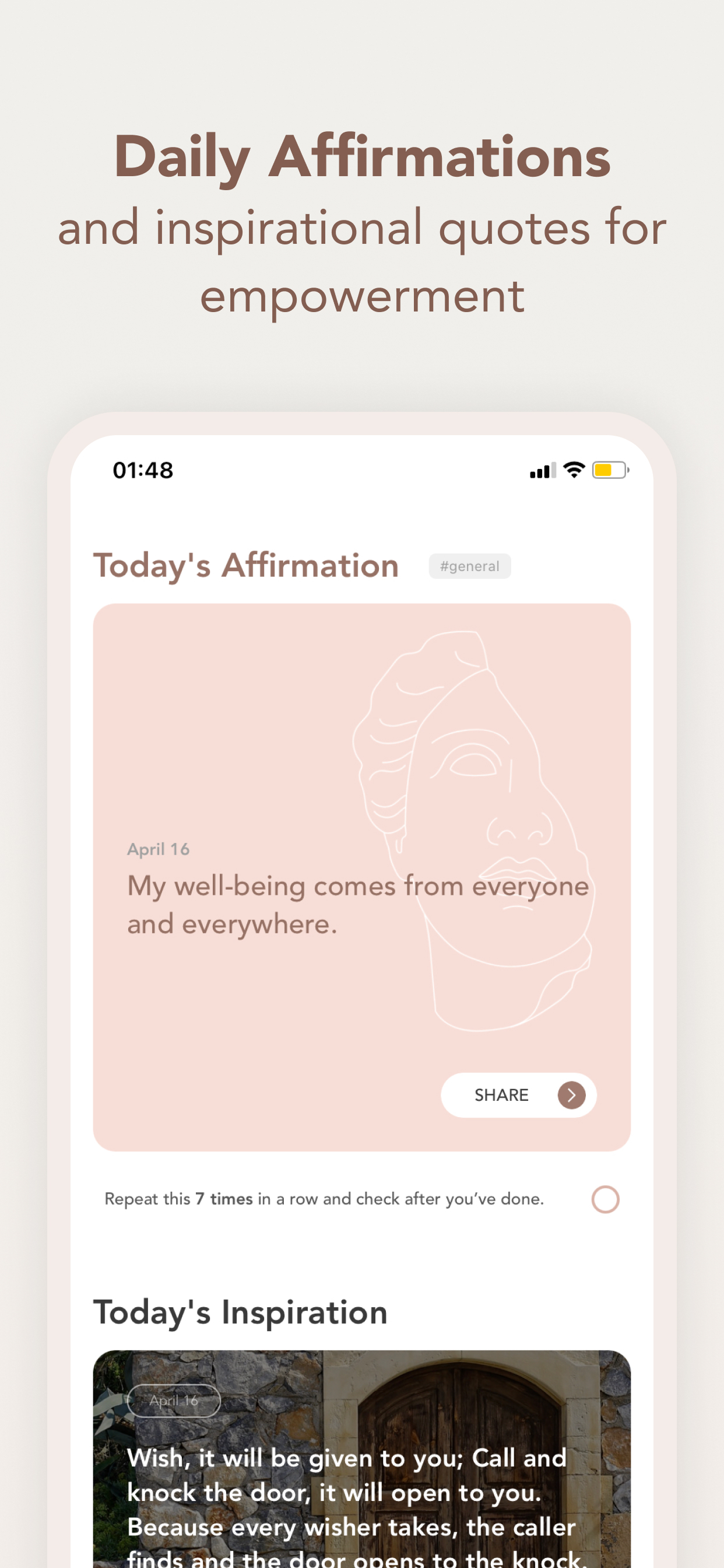 Every day you'll be getting inspirational and mindful quotes to empower yourself and other women. You can share quotes, download quotes with beautiful background pictures. Goddess energies will be everywhere for all women.