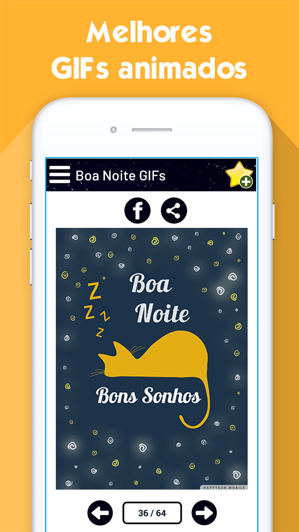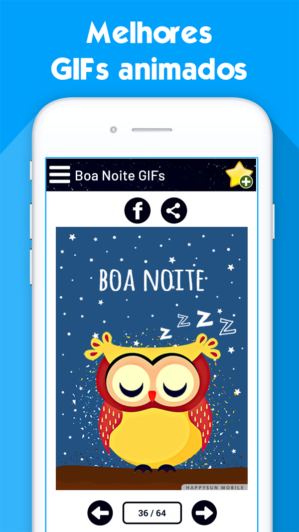 Gifs de boa noite é a melhor coleção de gifs com mensagem de boa noite. Cada gif tem animações fofas, imagens bonitas e mensagem calorosa. Agora, o aplicativo suporta em 8 idiomas: inglês, espanhol, português, alemão, italiano, francês, malaio e russo. Novos gifs adicionados regularmente. Vamos compartilhar uma mensagem de boa noite, gifs com seus entes queridos para que eles se sintam felizes e tenham bons sonhos! *** Principais características *** ★ O aplicativo tem centenas de incríveis frases, fotos, gifs: - Boa noite amor: gifs de amor com mensagem romântica para o seu amor. - Gifs de boa noite para amigos: gif bonito com frases para desejar a seus amigos e entes queridos uma noite tranquila e bons sonhos. Você vai encontrar belas imagens de lua, estrelas e personagens adoráveis na fantasia, mundo dos sonhos. ★ Share mensagem de boa noite to Facebook, WhatsApp and other social networks. ★ Salve imagens de boa noite para o cartão SD. ★ Adicione / remova imagens de boa noite de / para a seção de favoritos. ★ Navegue gifs de boa noite por lista ou ver em detalhes rapidamente e convenientemente. ★ Altere rapidamente as categorias pressionando a caixa suspensa no canto superior, aplique na visualização de lista e detalhes. ★ Bela música de fundo.