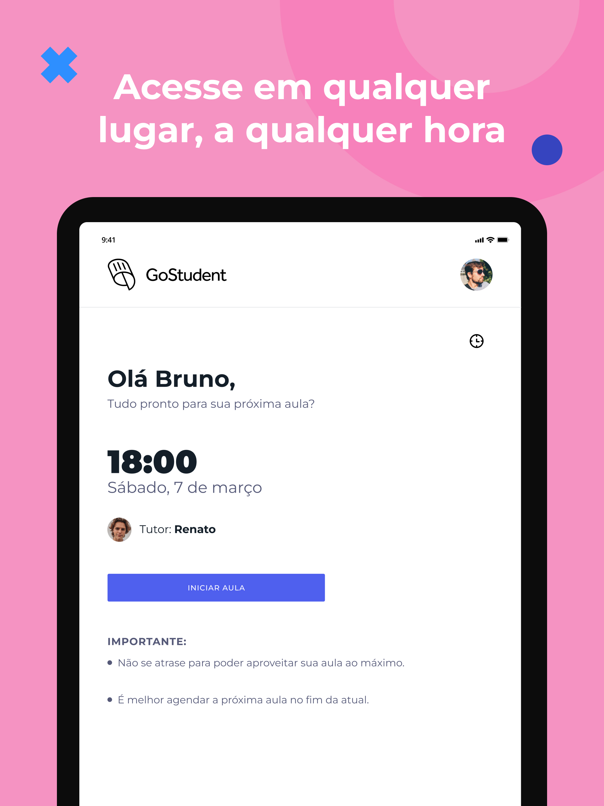 Potencialize a jornada de aprendizagem do seu filho com o GoStudent, a plataforma definitiva de tutoria online sob medida para suas necessidades únicas. Baixe o aplicativo e aproveite uma aula experimental gratuita hoje mesmo! O GoStudent conecta estudantes do ensino fundamental e médio a tutores excepcionais para aulas online personalizadas em disciplinas como matemática, inglês, ciências, idiomas e muito mais. Nossos tutores apaixonados são cuidadosamente selecionados de acordo com o estilo de aprendizagem, interesses e objetivos do seu filho, garantindo uma experiência de aprendizagem motivadora e envolvente. Seja seu filho no ensino fundamental, médio, universitário ou mesmo um aluno adulto, o GoStudent tem o tutor perfeito para ele. Como funciona a tutoria com o GoStudent: 1. Avaliação inicial: Identificamos as necessidades do seu filho e selecionamos o tutor perfeito com base em qualificações, personalidade e requisitos. 2. Aula experimental gratuita: Experimente nossa plataforma e conheça seu tutor sem compromisso. Decida sobre a adesão após a aula experimental. 3. Definição de metas: Colabore com nossos consultores educacionais para estabelecer metas alcançáveis e planejar o melhor caminho para o sucesso. 4. Início do aprendizado: Acesse nossa plataforma para acompanhar o progresso, agendar aulas e muito mais, tudo com apenas alguns cliques. Opções de tutoria incluem: - Suporte para ensino fundamental e médio - Orientação acadêmica de longo prazo - Auxílio com dever de casa - Preparação para provas e revisão - Tutoria especializada para exames específicos Flexibilidade e conveniência: - Agendamento e reagendamento fácil - Sessões de tutoria 1:1 - Grupo no WhatsApp com o tutor - Pagamentos automáticos - Tutores substitutos garantidos Aprendizado online inovador: - Acesso em todos os dispositivos - Função de gravação de aulas - Quadro branco digital interativo - Compartilhamento de tela e troca de arquivos Recursos exclusivos: - Programa de indicação - Recursos de aprendizado - Atualizações de progresso - Equipe de suporte dedicada - Verificação aprimorada de antecedentes para tutores do Reino Unido Segurança e qualidade garantidas: Nossos tutores passam por um rigoroso processo de seleção, garantindo um conhecimento excepcional da matéria e habilidades de ensino. Verificações aprimoradas de antecedentes proporcionam tranquilidade em um ambiente de aprendizagem seguro. Experimente a conveniência da tutoria online 7 dias por semana e observe a confiança e as notas do seu filho decolarem. Seja para ajudar em exames, programação ou aprender um novo idioma, o GoStudent está aqui para ajudá-los a alcançar seus objetivos!