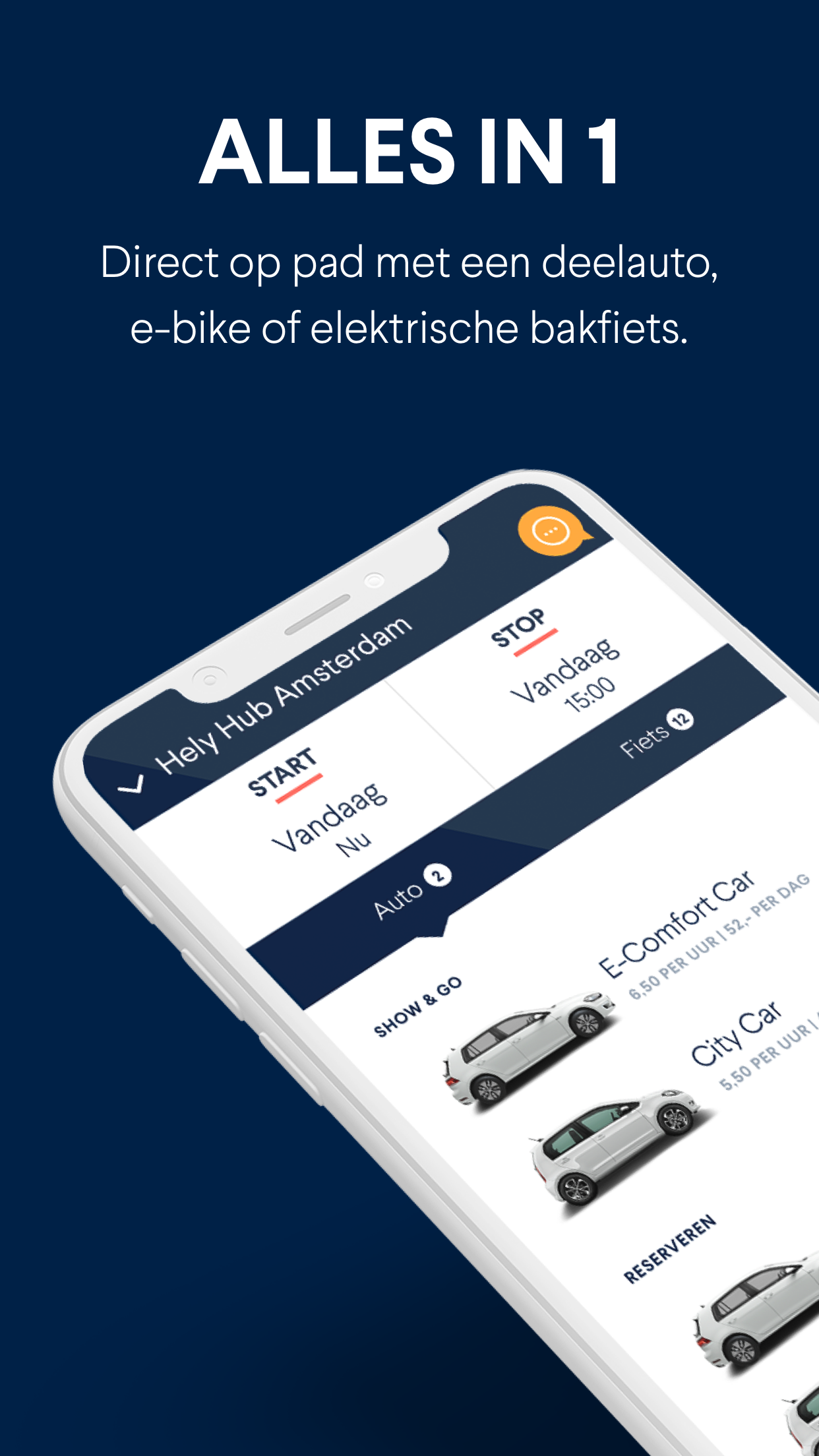 Escolha entre vários carros compartilhados (elétricos), e-bikes e bicicletas elétricas de carga em um Hely Hub na área. Desta forma, você é sempre flexível, contribui com o meio ambiente e também economiza muitos custos.