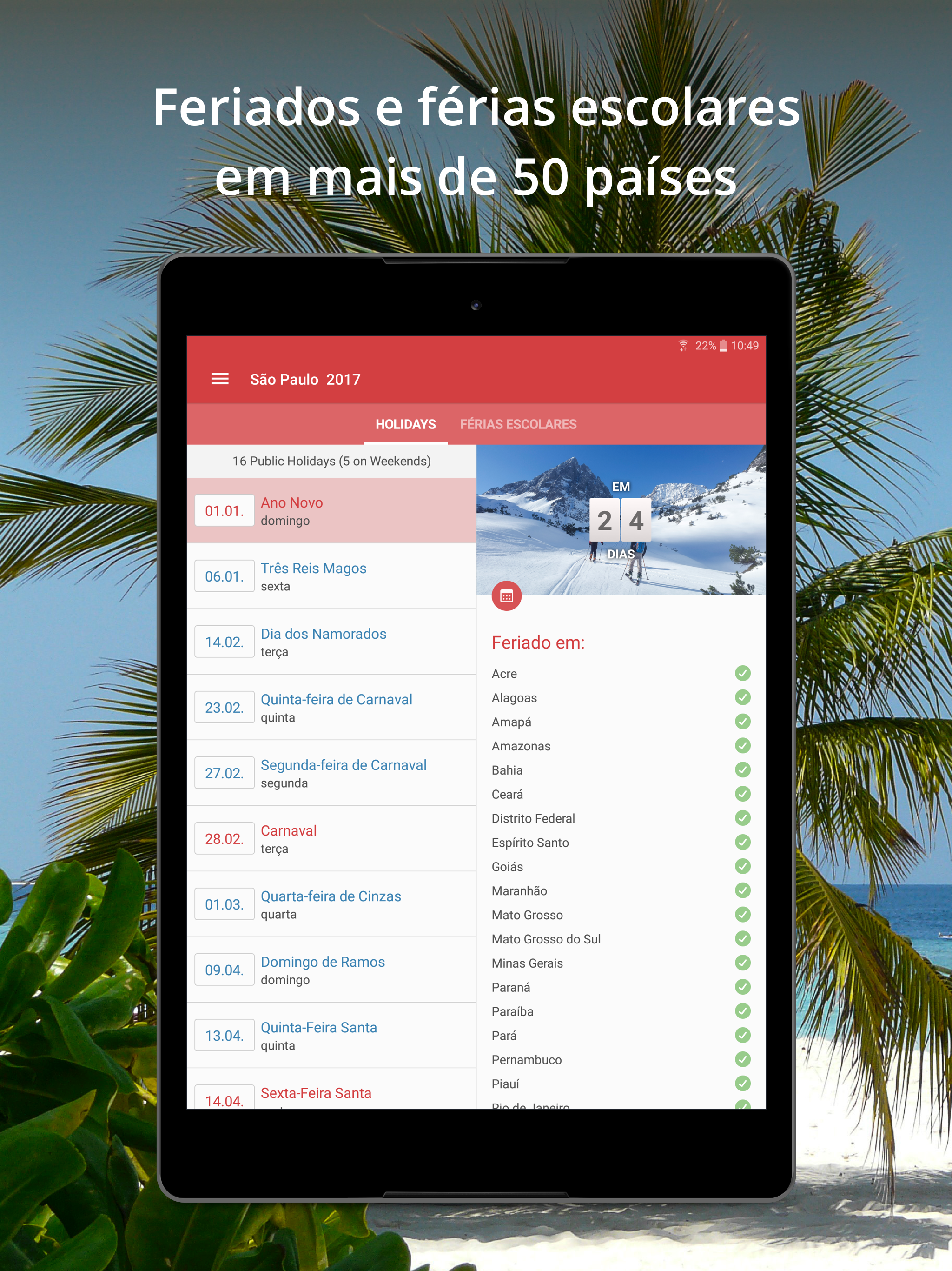 *NOVO: Novos feriados e férias escolares vão ser carregados automaticamente ao applicativo. Não precisa mais esperar até o próximo update.