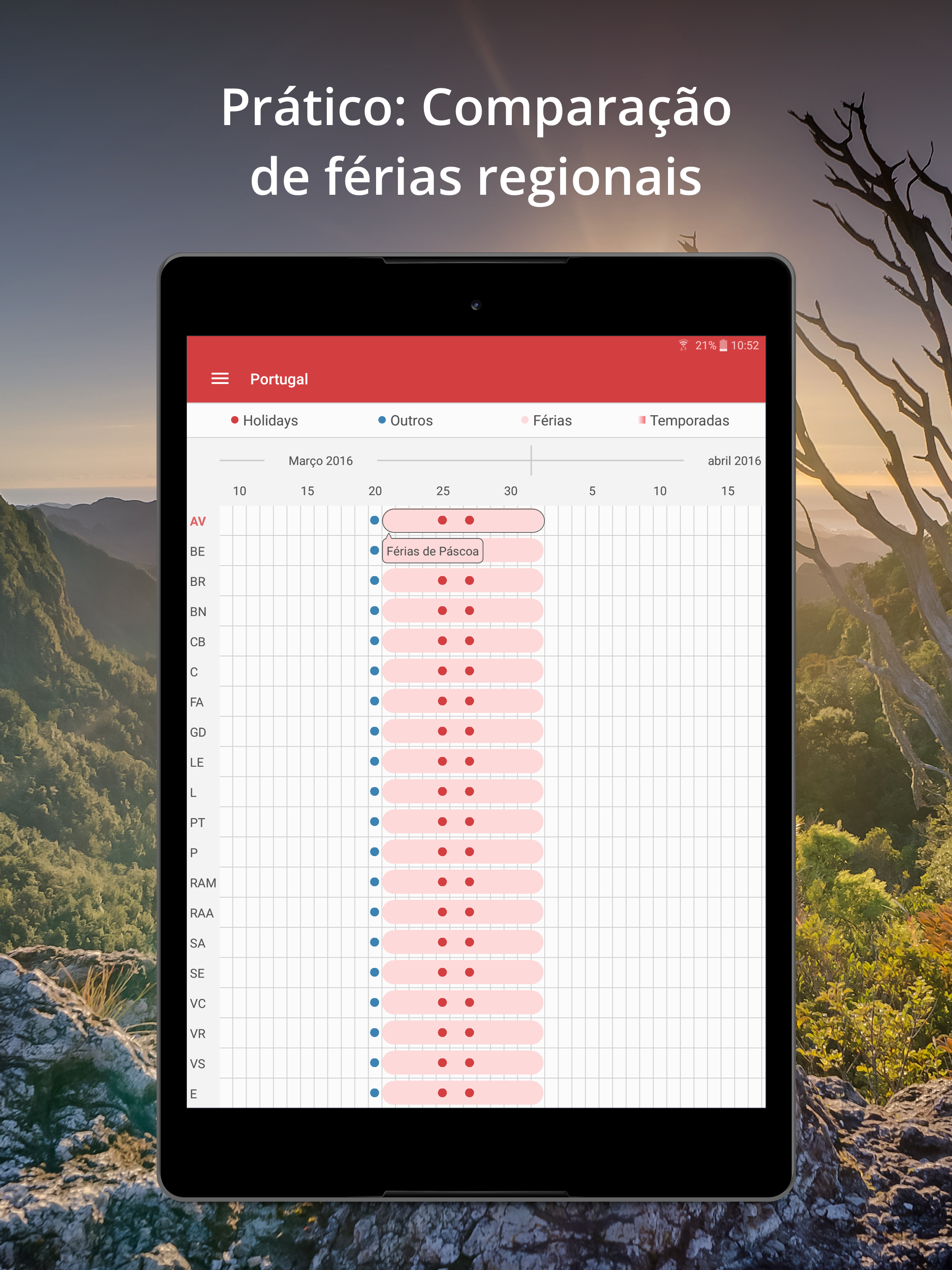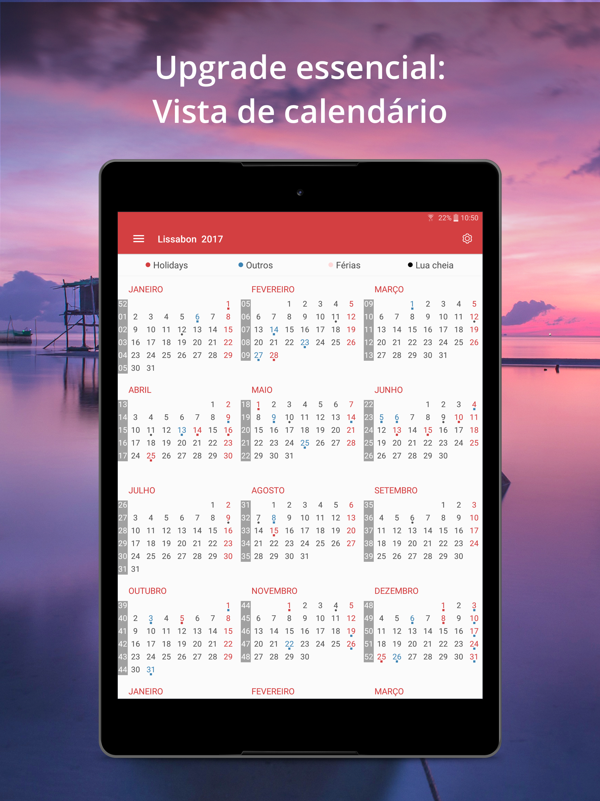 Você pode ter mais informações no website do App Calendário de Feriados e Férias Escolares: www.holidaycalendar.com.
