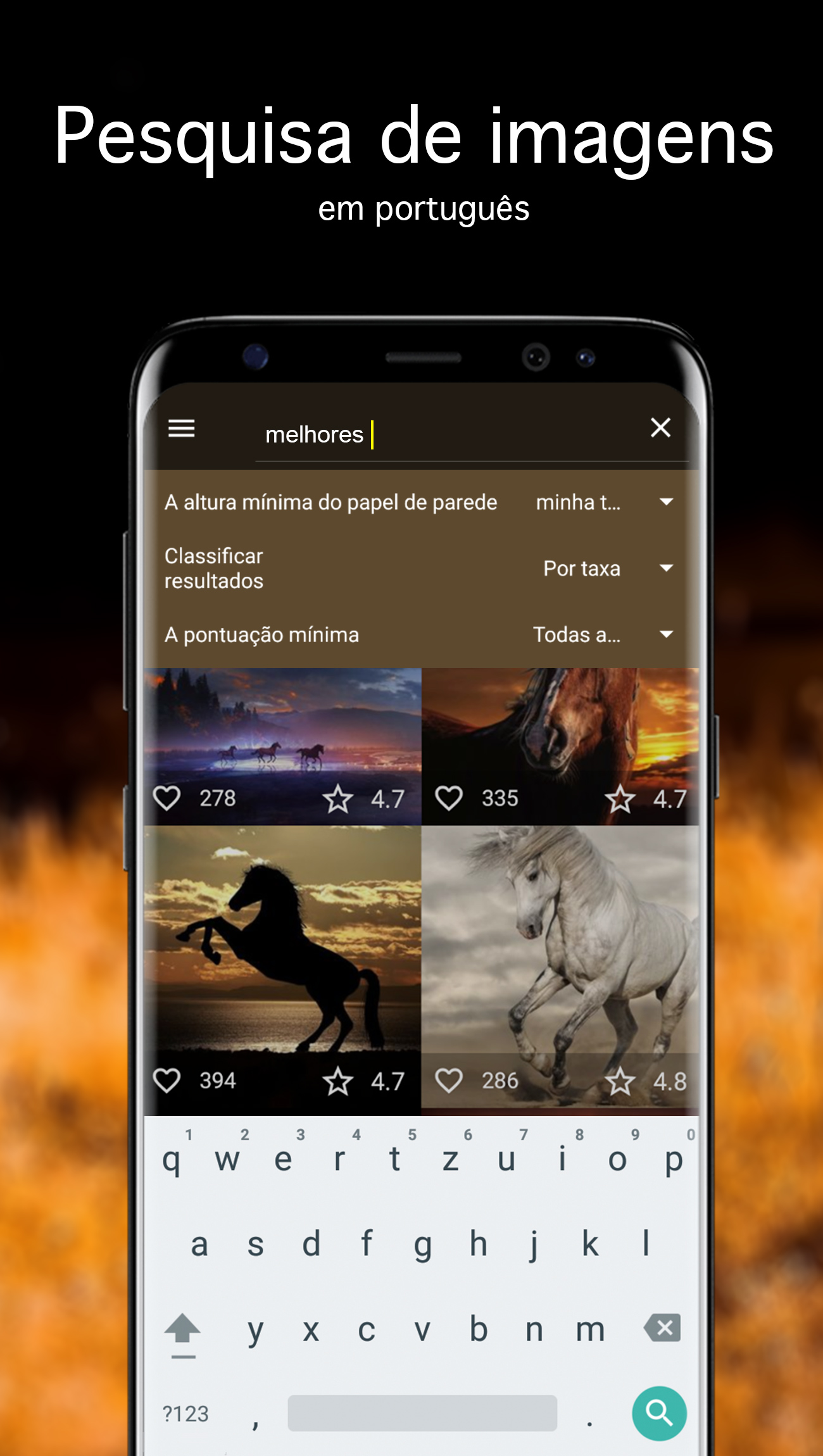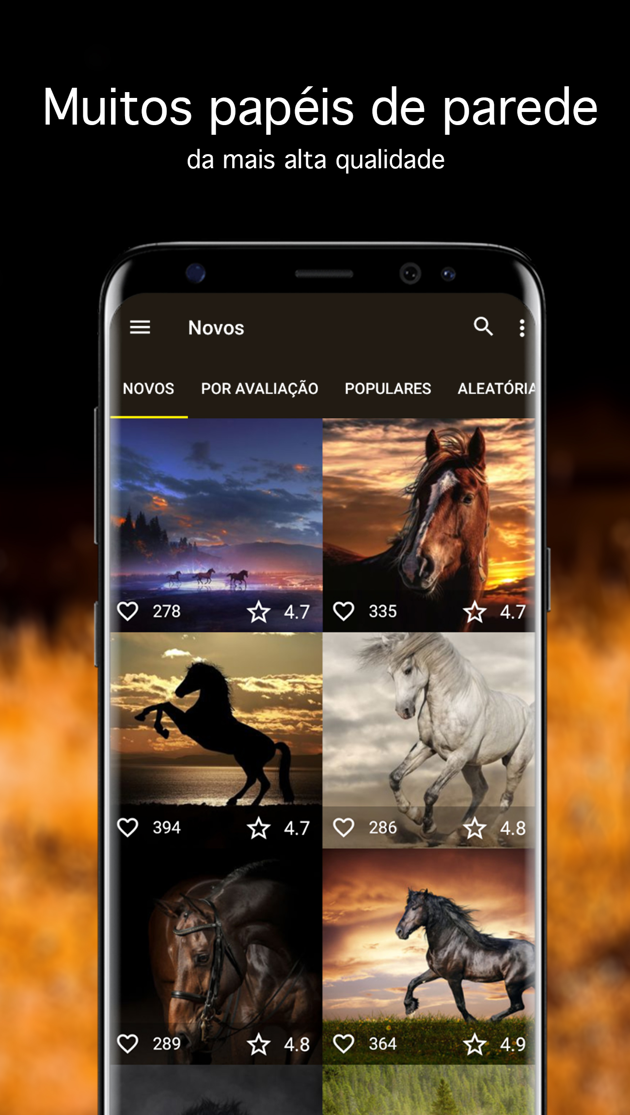 Centenas papéis de parede com cavalos de 7Fon. Novos papel de parede 4K cada dia! A aplicação irá abrir o novo mundo de planos de fundo com cavalos excelentes para o seu celular android ou para o seu tablet. Os planos de fundo são verificados e escolhidos manualmente antes de entrar no catálogo, o que garante a alta qualidade de papel de parede. Novos planos de fundo com cavalos para android acrescentam-se 24 horas por dia 24/7/365. Características da aplicação: • Centenas papéis de parede com cavalos perfeitos • Atualização do catálogo de 24 horas com moderação manual • Classificação de imagens por data, avaliação e popularidade • Procura de imagens com cavalos por tags ou cor • Adição aos favoritos para acesso conveniente aos papéis de parede favoritos • Descarregamento das imagens para instalação adiada • Salve as imagens no cartão SD ou na galeria • Corte da imagem antes de instalação • Envie as imagens através de mensageiros instantâneos ou compartilhe-os nas redes sociais • Regulação de qualidade da visualização para economizar o tráfego • Consumo de energia mínimo sem descarregar bateria • Aplicação é compacta, ocupa memória mínima e é absolutamente gratuita Pesquisa de imagens com cavalos Um sistema de pesquisa inteligente irá ajudá-lo a encontrar o papel de parede 4K desejado para instalar na área de trabalho do seu computador. Além disso a tecnologia inovadora de pesquisa por gama de cores facilita a busca de imagem de cor procurada. Tendo selecionado a imagem com cavalos, pode baixa-la, adiciona-la aos favoritos ou imediatamente instalar como plano de fundo no celular ou no tablet. Papéis de parede de qualidade Todas as fotografias são cuidadosamente selecionadas por qualidade e composição da imagem. Só os papéis de parede com resolução Full HD e mais (os papéis QHD, 4K e UHD) são admitidos. Ao mesmo tempo escolhemos só planos de fundo vivos e vistosos que vão ficar bem depois de corte e de instalação de imagem na tela inicial ou na tela de bloqueio. No caso de obtenção de copia melhor da imagem com cavalos mudamo-la para a nova. Periodicamente eliminamos aquelas imagens, que receberam uma avaliação baixa e que não são interessantes aos nossos utilizadores. Assim você recebe só os melhores papéis de parede com cavalos grátis. Coloque os papéis de parede com cavalos maravilhosos agora mesmo!