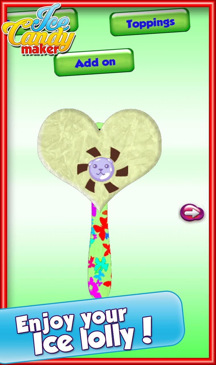 Agrade células cinzentas do seu cérebro e desencadear o criativo você. Escolha de diversos sabores dar água na boca e fazer o seu próprio gelo Pop do jeito que você quiser. Polvilhe as coberturas, decore com os muitos geada. Ice Candy Maker fornece-lhe com seus doces favoritos de gelo.