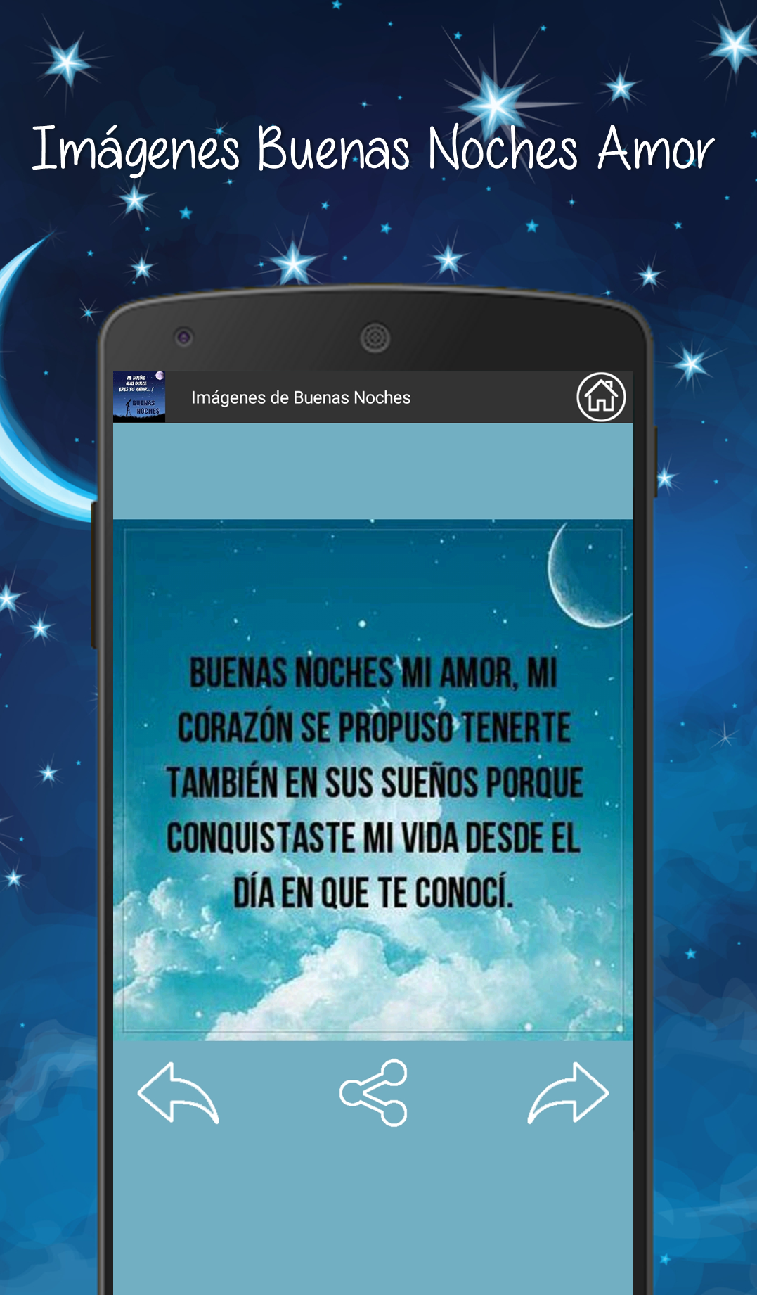 Imagens de amor de boa noite Que tal surpreender alguém que você ama com uma imagem de boa noite para desejar bons sonhos antes de dormir e ter um sorriso? Esta é uma coleção fantástica de imagens HD de alta definição, todas selecionadas para serem exibidas no seu dispositivo. Você pode compartilhá-los com seus amigos e familiares ou definir como papel de parede. Personalize sua tela inicial com fotos incríveis para tornar seu dispositivo muito mais atraente. As melhores frases e mensagens com imagens de boa noite especialmente escolhidas para você. Você pode compartilhar essas frases de boa noite com seu amor, entes queridos ou qualquer pessoa a quem deseja desejar boa noite de uma forma especial. Quer uma imagem com boas frases de boa noite para o seu amor especial? Imagens de Boa Noite amor, algumas são elogios de amor, lindas frases românticas para se apaixonar, outras são versos leves, poesia de amor, amor verdadeiro, saudações de amor, simplesmente, lindas mensagens de boa noite. Você pode usá-los para suas mensagens e frases para conquistar, dizer: eu te amo, eu te amo, meu príncipe, minha princesa, estou apaixonado, meu coração, confissões de amor, declarações de amor, fundos com rosas e flores, amor proibido, frases de amor platônico, doce, saudades, poético, apaixonado, noite linda e muito mais. Surpreenda, e envie lindas mensagens discretas, sutis ou ousadas. Preparamos para você as melhores frases de boa noite de amor, fáceis de usar em seu app. Então este aplicativo com certeza é para você! Estas imagens românticas de boa noite irão certamente ajudá-lo ou a sua pessoa especial a dormir melhor. Características do Good Night Love Images: - Publique diretamente no Facebook, Twitter, etc ... - Compartilhe por e-mail e sms. - Compartilhar por WhatsApp, Line etc ... - Definir como status nas redes sociais. - É totalmente grátis. - Design simples e intuitivo. - Sem conexão à Internet necessária. - Compatível com smartphones e tablets. Com este aplicativo Good night love images você poderá surpreender seus entes queridos e todos os seus contatos com frases e imagens de boa noite cheias de bons votos, carinho e amor, mostrando às pessoas que as recebem o quanto você as aprecia e se preocupa. Com o envio dessas mensagens e imagens de happy night você poderá conseguir sorrisos de seus contatos antes de dormir, já que poderá compartilhar essas fotos de bons sonhos em suas redes sociais e chats favoritos de uma forma simples e totalmente gratuita. Se gostou do Good Night Images love avalie-nos com 5 estrelas ★★★★★ para que continuemos a melhorar e a manter a aplicação para que a cada dia receba um melhor atendimento! Obrigado! Para algumas frases, foram utilizadas imagens e montagens de domínio público, uma vez que não são identificadas de forma alguma que indique a existência de direitos reservados de exploração sobre elas. Qualquer pessoa física ou jurídica que tenha sido titular de alguma das imagens nela contidas, pode comprová-lo, escrevendo-nos, através do correio, uma mensagem que se encontra em nossos dados de desenvolvedor, comprometendo-nos à retirada imediata da referida imagem uma vez verificada, em seu caso, a propriedade da imagem protegida.