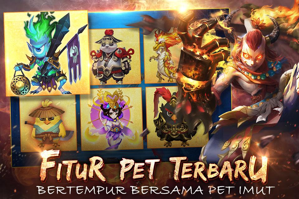 ** Fitur Terbaru: 1. Penyucian Equip Mount 2. Pet 3. Map terbaru Pintu Langit Selatan 4. Misi Peta Harta ** Penyempurnaan Sistem Permaianan 1. Pebaikan Otomatis Buka event persik di klan 2. Pengaturan ulang BOSS drop 3. Peningkatan Hadiah, Arena, misi harian, menebas patung dan masih banyak lagi 4. Pemotongan kas negara untuk kekalahan perang menjadi 10% 5. Dan perbaikan beberapa bug lainnya