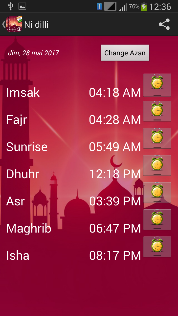 India Prayer Timings is best android application for indian muslims , that help him to receive a prayer times following 34 cities in India. India prayer timings is an app to get the latest prayer timings for the major cities of India. This app provides daily prayer timings for india along with below features : - Notification for each prayer and Iqamah reminders, with the ability to adjust their times. - Imsak, Fajr, Shurooq, Dhuhr, Asr, Maghrib and Isha prayers - Ability to adjust india prayer times manually - You can stop the reminder sound by clicking the notification in the status bar - Azkaar for daily recitation - 22 unique Azan sounds are provided - Hijri date with gregorian date is provided - share india prayer timings with your friends - users can listen to nasheed playback while using app. This can be disabled by using settings. following 34 cities in india India Ramadan Prayer Times Mumbai Prayer Times, Delhi Prayer Times, Bangalore Prayer Times, Hyderabad Ahmedabad Chennai Kolkata Surat Pune Jaipur Lucknow Kanpur...