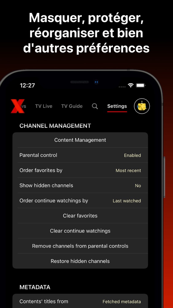 Regardez votre contenu numérique, vos émissions de télévision en direct, vos films et vos émissions de télévision avec style (NOUS NE FOURNISSONS PAS DE CONTENU)! IPTVX prend en charge les principaux formats et services, notamment M3U, M3U8, Xtream API et SMB. - Toutes vos données sont synchronisées sur votre Apple iCloud pour les rendre disponibles sur tous vos appareils et accessibles uniquement à vous; - Section récemment ajoutée; - La section continue de surveiller; - Section Favoris; - Série télévisée avec une page dédiée incroyable; - Bouton "Prochain épisode" lorsque l'épisode touche à sa fin (et bien plus); - Choisissez entre le style de navigation horizontal ou vertical dans «l'écran en direct» pour explorer les catégories, les canaux, l'aperçu et les informations EPG, le tout dans le même écran; - Carte TV Guide (grille EPG); - Cast Airplay 2; - Recherche de films, séries télévisées et chaînes en direct; - Auto EPG: si votre serveur contient un fichier EPG (Electronic Program Guide), IPTVX le trouvera automatiquement pour vous; - Possibilité de saisir une URL EPG arbitraire (prend en charge GZIP); - Page des paramètres; - Contrôle parental; - Masquer les chaînes et les catégories; - Prise en charge de plusieurs listes de lecture; - Sélectionnez les sous-titres internes à la vidéo et, lorsqu'ils sont disponibles, également extraits d'OpenSubtitles.org; - Sélection de piste audio; - Des informations détaillées pour chaque film, série télévisée, épisodes et chaînes en direct; - Liste des chaînes en direct directement sur le lecteur; - Zapping TV en direct; - Contenu spécial;