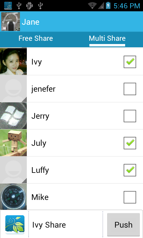 - Free Share: Share contents to your friends who is using any device with a browser (Android, iPhone or PC). Simply scan the QR code or directly input URL generated by Ivy Share, shared content will be downloaded!