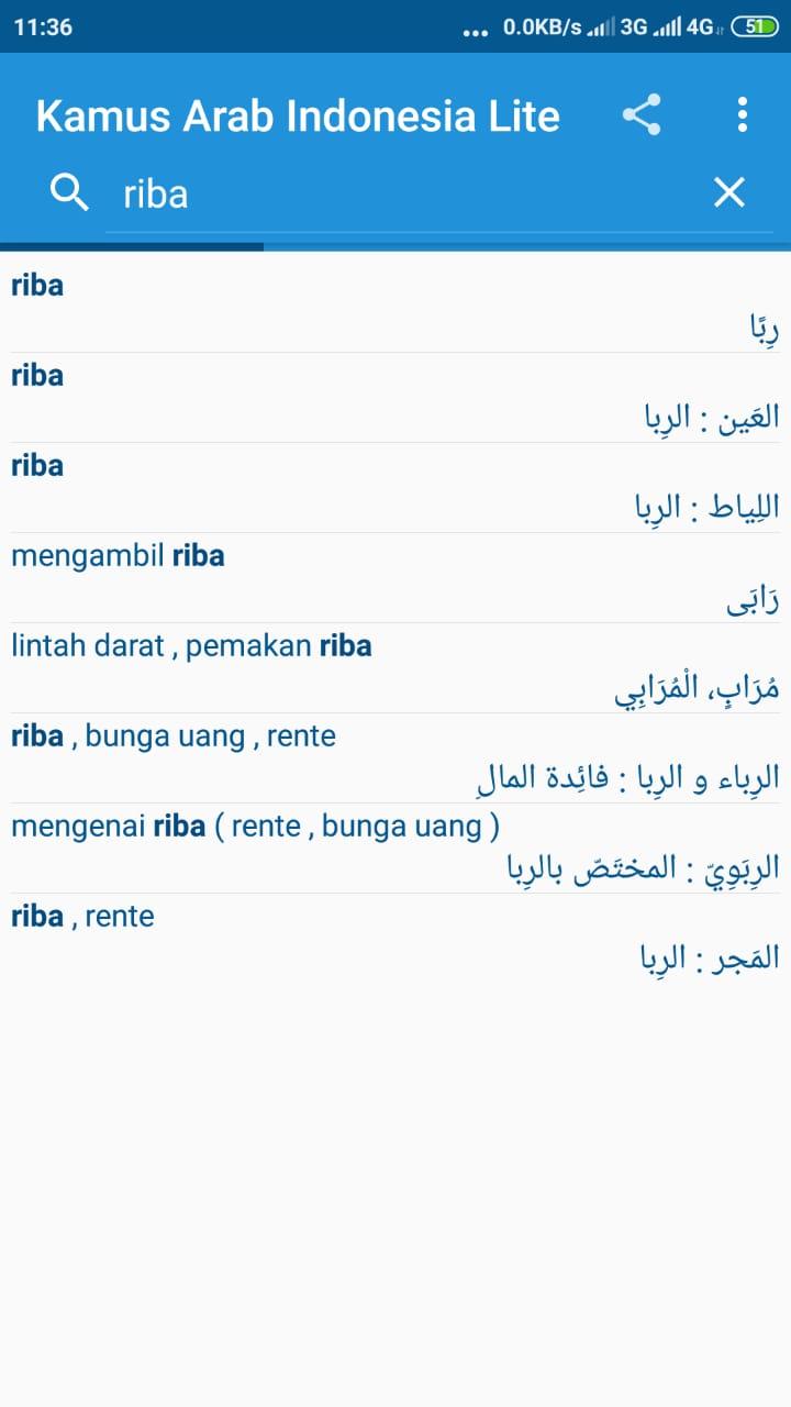 Dicionário Indonésio Árabe é o primeiro aplicativo de dicionário árabe no android que pode traduzir palavras do indonésio para o árabe e vice-versa. Este aplicativo foi desenvolvido em 2012 e, se Deus quiser, continuará sendo desenvolvido.