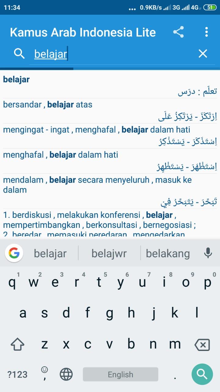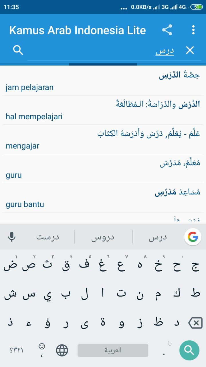 4. Para Android versão 3 para baixo ou android que não suporta árabe, instale o aplicativo de teclado árabe (recomendamos a instalação de "anysoftkeyboard" + seu pacote de atualização de idioma árabe) para transliterar palavras em árabe - indonésio.