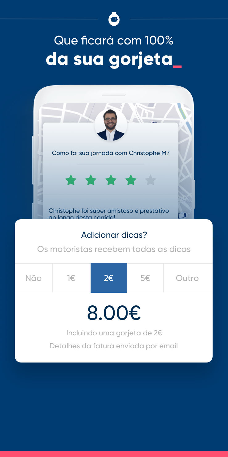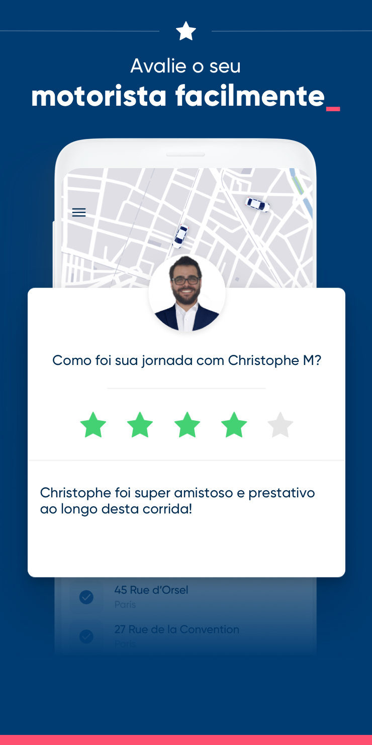 Apresentamos-te a Kapten, a app de transporte urbano que quer o melhor para os seus utilizadores! Mas que vantagens oferecemos? A tarifa mais leve do mercado, um programa de fidelização exclusivo que recompensa a lealdade dos utilizadores desde a primeira viagem, os melhores motoristas em que 98% estão classificados acima de 4,8 e um serviço de apoio ao cliente local e sempre disponível. Já conta com mais de 2 milhões de fiéis utilizadores e mais de 20 000 motoristas ao seu dispor! Disponível em Londres, Paris, Lyon e Riviera Francesa. PRINCIPAIS CARACTERÍSTICAS - O melhor preço, o mais competitivo do mercado, sempre – a partir de apenas 2,5€! - Preço fixo, sem surpresas - Pagamento integrado na aplicação - Disponível 24 horas por dia/ 7 dias por semana - Programa de fidelização exclusivo - Faturas emitidas no mercado de operação com IVA - Impostos da marca são pagos no mercado de operação CENTENAS DE OPINIÕES POSITIVAS - “A Kapten é uma ótima aplicação para chamar um carro. Não posso passar sem ela!” - “Fantástico! Finalmente há motoristas que se preocupam connosco.” - “Rápida, eficaz e muito intuitiva.” - “Desde que ouvi falar dela, uso exclusivamente a Kapten.” - “Melhor do que a Uber, melhor do que a Taxify. Um serviço de apoio ao cliente de cinco estrelas.” - “Os melhores preços - quase 25% mais barato que a concorrência!” E MUITO MAIS - Procure motoristas perto de si em tempo real - Possibilidade de indicar ou mudar o seu destino durante a viagem - Receba notificações para cada etapa da sua viagem - Indique o seu número de voo e o seu motorista estará à sua espera no aeroporto indicado - Encontre facilmente o seu motorista nas estações de caminhos de ferro, especialmente na Gare do Oriente, nas estações de Santa Apolónia e do Rossio - Pague com o seu cartão de débito, crédito ou com o sistema Apple Pay - 100% das suas gorjetas na sua aplicação são atribuídas ao motorista - Serviço de apoio ao cliente disponível sete dias por semana CIDADES DISPONÍVEIS - Paris e região de Ile-de-France: Paris, Versalhes, Créteil, Argenteuil, Cergy, Saint-Denis, Montreuil, Aubervilliers, Boulogne-Billancourt, Nanterre, Colombes, Courbevoie, Issy-les-Moulineaux, Levallois-Perret, Disneyland Paris, aeroportos de Paris (CDG, Orly) e muito mais - Área metropolitana de Lyon: Lyon, Villeurbanne, Vénissieux, aeroporto de Saint-Exupéry e muito mais - Riviera francesa: Nice, Cannes, Antibes, aeroporto de Nice Côte d'Azur e muito mais - Mais cidades em breve! CONTACTO - Web: https://www.kapten.com - Facebook: https://www.facebook.com/kaptenportugal - Twitter : https://www.twitter.com/kapten_pt - Instagram : https://www.instagram.com/kapten_pt Então, para onde quer ir?