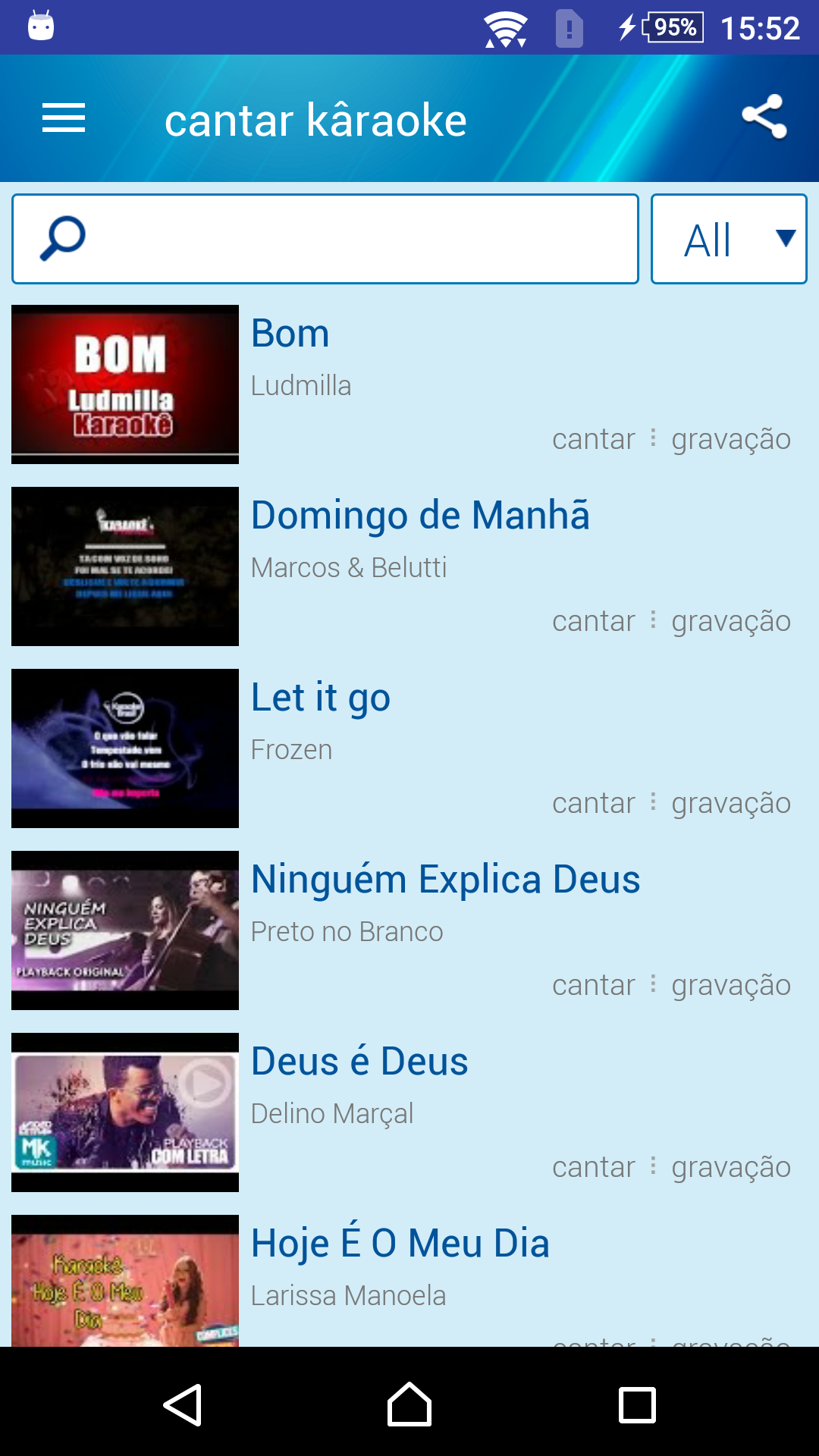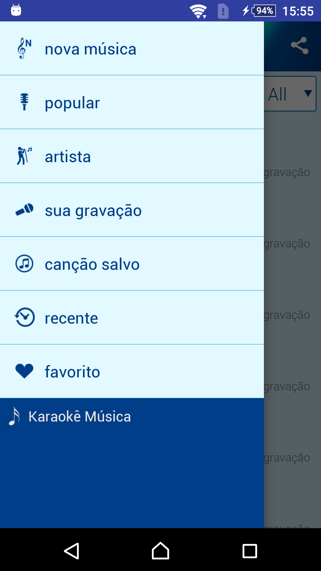 Karaokê canções voz gravador