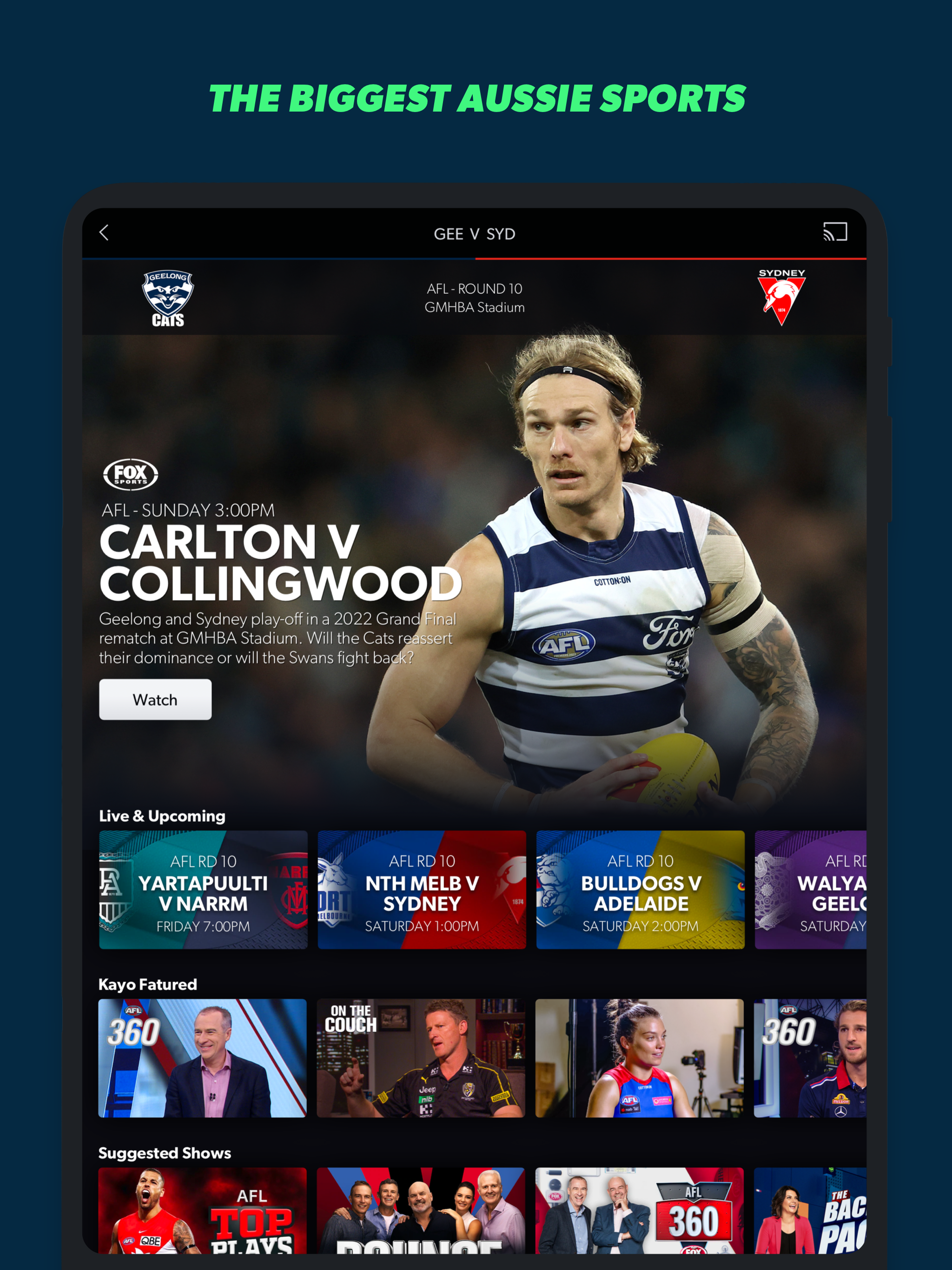Novo no Kayo? Comece seu teste gratuito agora. Assista a mais de 50 esportes ao vivo e sob demanda, incluindo os maiores esportes australianos e os melhores do exterior. • Todas as partidas de todas as rodadas da AFL e NRL Live e Ad-Break Free durante o jogo. Todas as suas notícias, análises e programas de entretenimento favoritos da Fox Footy e Fox League • Todos os treinos, eliminatórias e corridas dos campeonatos de F1®, Supercarros e MotoGP ao vivo e sem anúncios durante as corridas. • O melhor críquete internacional e doméstico, incluindo todas as séries internacionais masculinas e femininas australianas em casa e todas as partidas da BBL e WBBL ao vivo e com intervalo gratuito durante o jogo • O melhor dos EUA com cobertura ao vivo da NBA, NFL, NHL e MLB com ESPN • Cobertura ao vivo da NBL e WNBL com ESPN • Todos os jogos do Suncorp Super Netball, além de todas as partidas do Australian Diamonds ao vivo • Mais de 100 horas de cobertura ao vivo de todos os eventos do PGA Tour, além de todas as rodadas ao vivo de todos os quatro Majors de golfe e cobertura ao vivo de eventos do LPGA • UFC Fight Nights ao vivo, além de conferências de imprensa em eventos pay-per-view, pesagens e lutas preliminares via ESPN no Kayo • Programas semanais da WWE (Raw, SmackDown e NXT), além de todos os eventos premium ao vivo, incluindo WrestleMania, SummerSlam, Royal Rumble e Survivor Series e um WWE ChannelT dedicado 24 horas por dia, 7 dias por semana. Novo no Kayo? Comece seu teste gratuito hoje. Assista aos seus esportes favoritos em dispositivos móveis, tablets e TVs compatíveis com Android™. Experimente uma nova maneira de assistir esportes com recursos revolucionários • SplitView – assista a até quatro vídeos de uma só vez, todos na mesma tela, em dispositivos selecionados. Mantenha a ação bem na sua frente com vários jogos ou use um ângulo de câmera extra • Momentos-chave – Esteja você acompanhando um jogo ou apenas queira assistir as melhores partes, os Momentos-chave oferecem acesso rápido a todos os destaques. Selecione na linha do tempo do player de vídeo, é fácil alternar entre qualquer momento importante • Estatísticas interativas – desfrute de estatísticas ao vivo durante o jogo, aproximando você dos esportes que você adora. Estatísticas interativas estão disponíveis em todas as partidas de críquete australiano, AFL e NRL • Minis – deseja uma visão abrangente de um jogo ou corrida em apenas uma fração do tempo? Kayo Minis são replays que condensam todos os maiores momentos em menos de 30 minutos. Minis estão disponíveis para todos os jogos da AFL, NRL, F1®, Supercars e MotoGP, além de ESPN Minis para jogos selecionados da NBA e NFL disponíveis por 72 horas • Sem spoilers – se você estiver atrasado ou se seus planos saírem dos trilhos, nós ajudamos você ocultando as pontuações e resultados até que você esteja pronto. Basta ativar/desativar spoilers • Kayo Freebies – junte-se ao Freebies para assistir à nossa extensa variedade de conteúdo de acesso gratuito, incluindo jogos ao vivo, documentos, programas de entretenimento e muito mais • Continuar assistindo – pause um jogo ao vivo e continue assistindo a qualquer momento dentro da mesma janela de visualização ou, para programas, salvaremos automaticamente sua posição de visualização para que você possa continuar assistindo quando estiver pronto. Termos e Condições: https://help.kayosports.com.au/s/terms-and-conditions-kayo-sports-application Política de Privacidade: https://help.kayosports.com.au/s/privacy-policy Declaração de coleta de dados: https://help.kayosports.com.au/s/data-collection