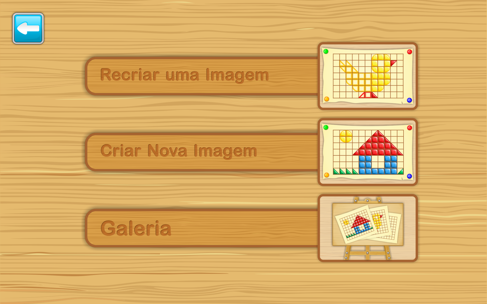 Os clássicos jogos de blocos com que todos nós brincamos quando éramos crianças se transformou em um divertido aplicativo para telas touch screen. Com o app "Kids Draw with Shapes", as crianças podem fazer desenhos criativos compostos de formas disponíveis em cores diferentes. As crianças podem escolher um projeto livre ou podem usar um dos 50 projetos padrão. Existem cinco modelos em cada uma destas dez categorias: - Aviões - Animais - Pássaros - Sobremesas - Comida - Cozinha - Plantas - Navios - Transportes - Embaixo da água As crianças podem salvar e visualizar suas obras na Galeria do aplicativo. A versão lite contém o "Criar uma Nova Atividade" e uma em cada 10 categorias da atividade "Recriar uma Imagem". A versão paga contém 9 categorias adicionais na atividade "Recriar uma Imagem".