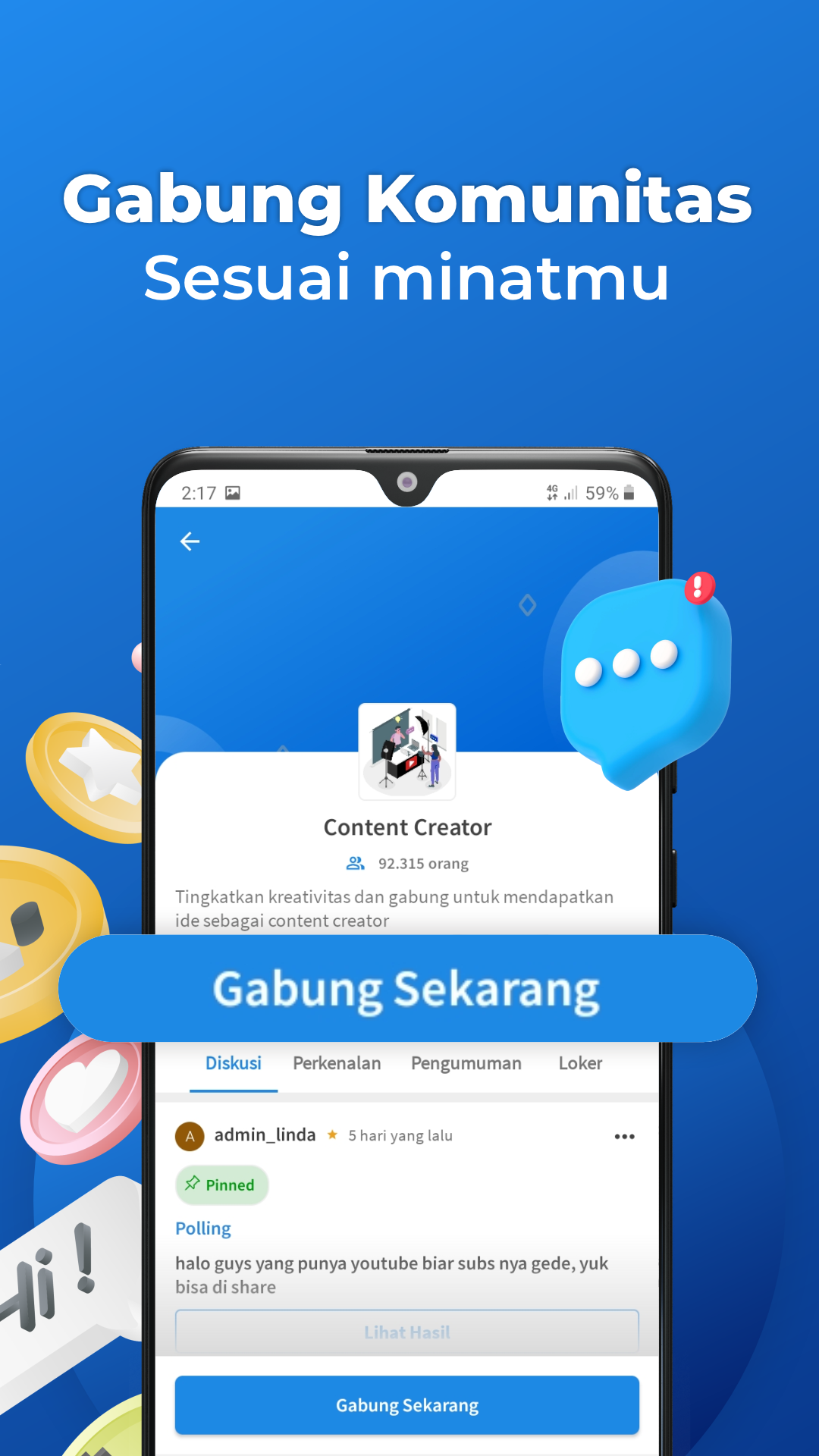 KitaLulus foi selecionado como o melhor aplicativo do Google Play em 2022🥳 Obrigado pela confiança e apoio do Job Fighters! Agora o KitaLulus tem 3 milhões de usuários ativos em mais de 60 cidades da Indonésia, com a mais completa variedade de empregos em mais de 70.000 empresas. Consiga o emprego dos seus sonhos com um clique! 🚀 Candidate-se facilmente a vagas de emprego Processou mais de 3 milhões de pedidos de emprego por mês. Você pode se candidatar a vagas de emprego sem experiência. Há uma variedade de armários para graduados do ensino médio/profissional, graduados de bacharelado, armários de necessidade urgente, armários de altos salários e vagas de estágio. 📌 Vagas garantidas Todas as vagas publicadas passaram por um cuidadoso processo de verificação, combinando tecnologia e uma equipe dedicada, aumentando assim a segurança da plataforma KitaLulus para quem procura emprego. 🏢 Empresa dos sonhos Com a confiança de 50 mil grandes empresas na Indonésia. Para aqueles que estão prontos para trabalhar, muitas opções de empresas estão esperando por vocês! 📍 Vagas mais próximas Utilize o filtro de localização para encontrar vagas de emprego que correspondam ao seu domicílio. É claro que trabalhar em um local próximo tornará mais fácil ser mais produtivo. ☎️ Solicite uma entrevista completando seu perfil Complete o seu perfil para atrair a atenção do HRD, tornando-o mais atraente. Certifique-se de sempre atualizar seu perfil mais recente para receber uma chamada de emprego imediatamente. 👨💻 Conecte-se com HRD via WhatsApp Sem complicações, você pode enviar seu currículo diretamente ao HRD para se candidatar a vagas. ✔️ Categorias de trabalho completas As categorias são muito completas para qualquer trabalho WFO, trabalho online, híbrido, freelance, período integral e meio período. Garantir que os candidatos estejam prontos para trabalhar. ✨ HRD anti-ghosting com notificações Agora você pode receber notícias sobre o status da sua inscrição. Você também pode acompanhar o status do seu aplicativo no aplicativo. 💻 CV Maker é grátis! O recurso gratuito de criação de currículos do KitaLulus pode ajudá-lo a criar rapidamente um currículo profissional online. 🔥 Teste psicológico para candidaturas a empregos Enquanto espera por uma entrevista, você pode treinar com testes psicológicos para se candidatar a empregos. Ter uma pontuação alta no teste psicológico certamente tornará mais fácil para você estar pronto para o trabalho. 💼 Preparação para o teste CPNS 2023 Estudar para o teste CPNS agora não precisa ser caro. Você pode aprender CPNS/PPPK Try Out praticamente a qualquer hora e em qualquer lugar, sem complicações. Alcance o seu sonho de se tornar um ASN! 🙌 Comunidade e desenvolvimento de carreira Participe de uma comunidade de carreira para obter networking com quem procura emprego. Você também não perderá nenhum evento interessante para o desenvolvimento de sua carreira! Então, o que você está esperando? Vamos, #ComeceAgora, faça do KitaLulus seu parceiro de luta para iniciar sua jornada profissional #MaisFácil! 👨💻🙇🙆♂️ ================================================= ============ Obtenha informações sobre como trabalhar nas redes sociais: Instagram: Guerreiros do Trabalho (@kitalulus) - https://www.instagram.com/kitalulus/ Tiktok: o guerreiro do trabalho (@kitalulus) - https://www.tiktok.com/@kitalulus Twitter: Guerreiros do Trabalho (@kitalulus) - https://twitter.com/KitaLulus
