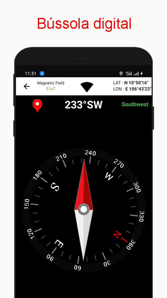 Bússola para Android é um ótimo aplicativo que você pode usar para encontrar a localização, encontrar direção na noite escura. Usamos mapas exatamente para sua localização atual em tempo real.