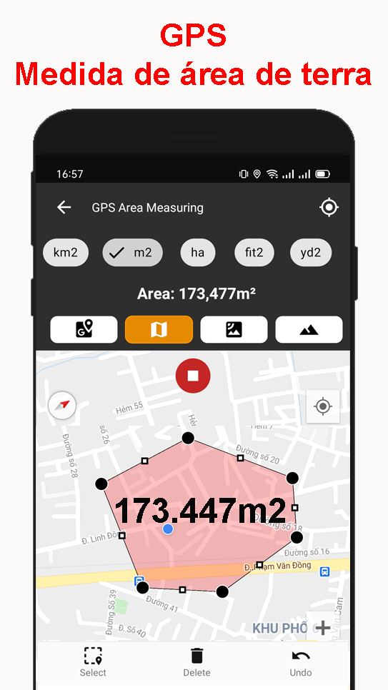 Calculadora de área GPS e GPS calculam distância em mapas, aqui está a função que permite usar a tecnologia gps para mostrar informações de latitude e longitude em mapas em tempo real. Quando você se move do local A para o B em terra. Esta tecnologia sincronizará entre você e os mapas para descobrir exatamente sua localização atual.