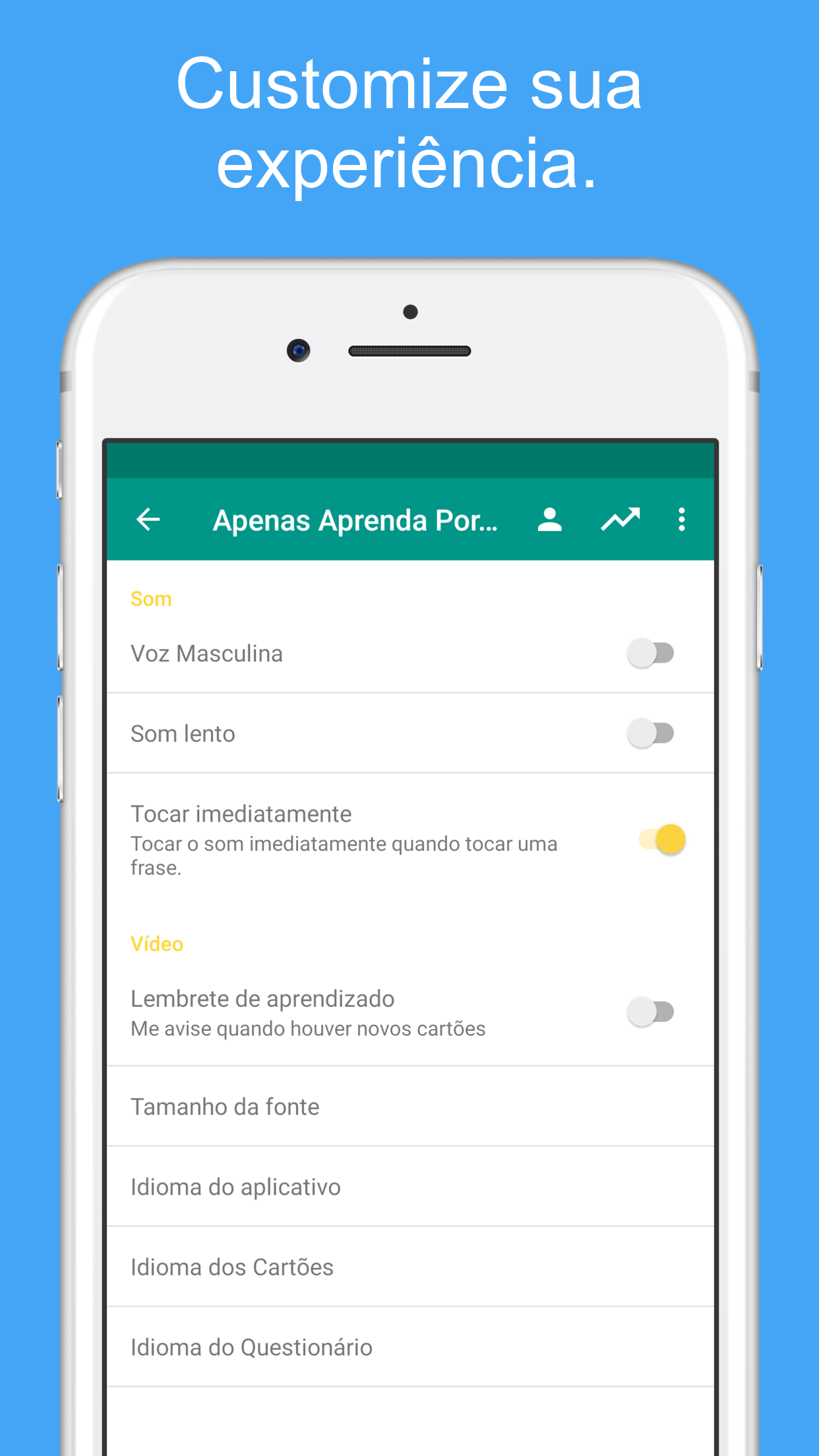 Todas as frases e palavras são apresentadas a você na forma original e fonética. Elas são gravadas por uma bela garota nativa da Brasil.