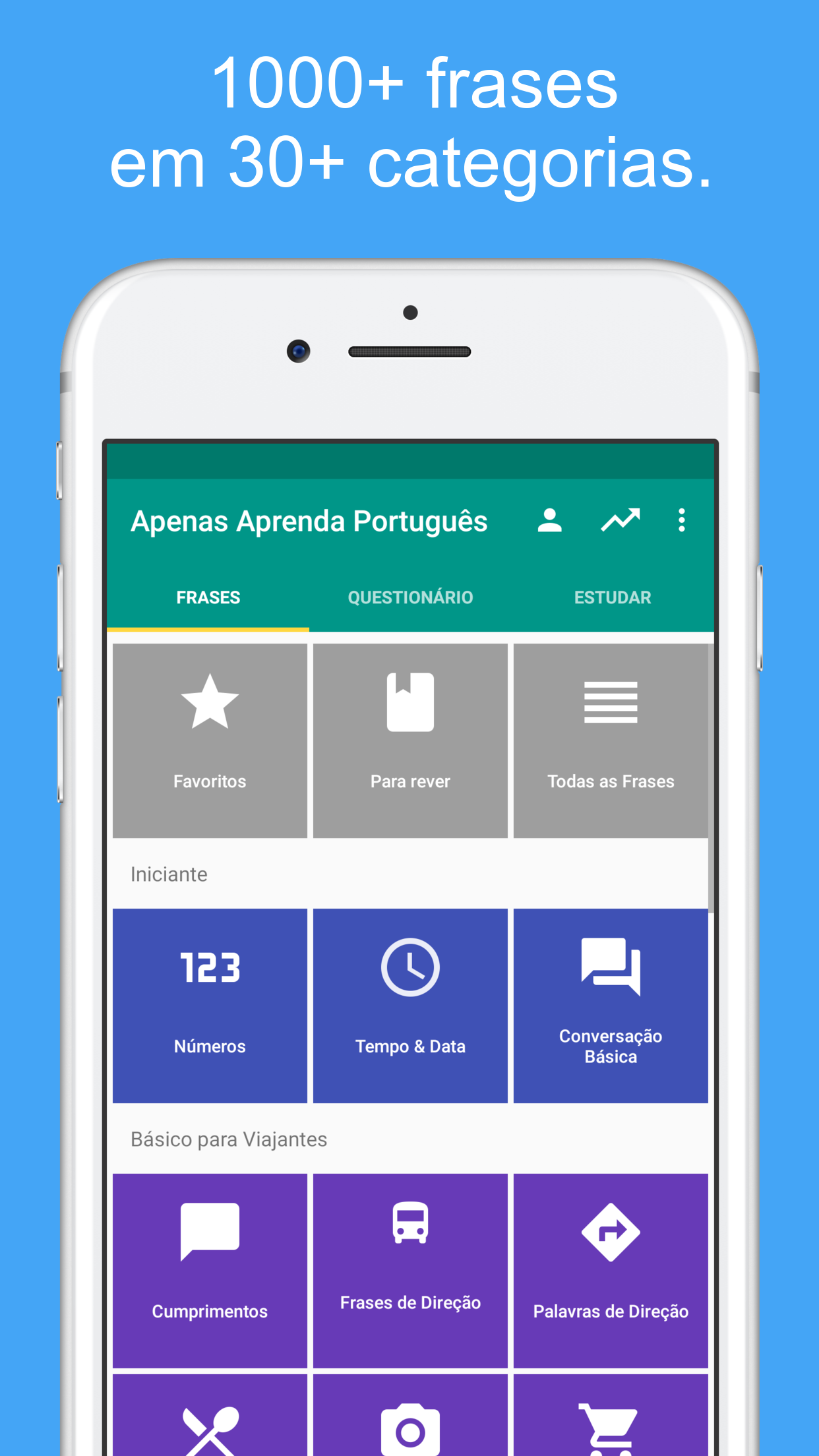 Aprenda com 300+ frases em Português do Brasil e palavras nas seguintes categorias: