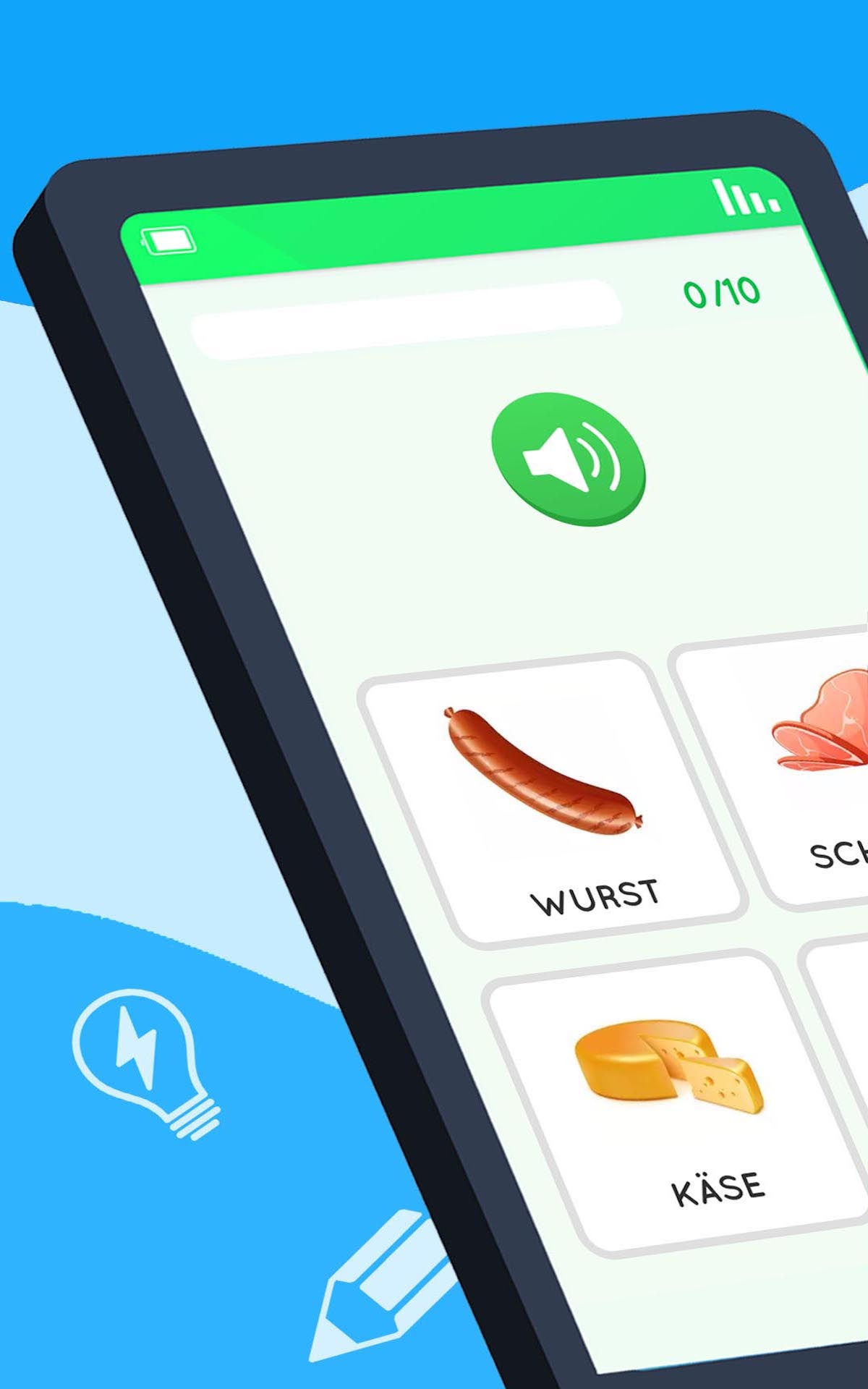 🇩🇪 Como Aprender Alemão grátis e fácil 🇩🇪 O jogo de Alemão para iniciantes ● Curso de Alemão offline ● Exercícios educativos ● 4 atividades para estudar e um exame por tema ● Aula: 36 temas e 3 níveis Básico: Letras do alfabeto, números, cores, verbos, alimentos ... Intermediário: Dias da Semana, Animais, Roupas, Corpo ... Avançado: Esportes, Casa, Natal, Música, ... ● 500 palavras com imagem e áudio (pronúncia nativa), para estudar o vocabulário ● Acento da Alemanha Aprender Alemão rapido e fácil em casa com nossas aulas em seu celular / tablet Você nunca mais vai precisar de um tradutor ou dicionário Alemão português! Aprenda Inglês, Português, Francês, Espanhol e Italiano com nossos aplicativos Um dos melhores jogos para estudar esta língua. Copyright: IMPORTANT: We are owners and have copyright of all sounds words Images have been obtained under licensed Creative Commons CC0