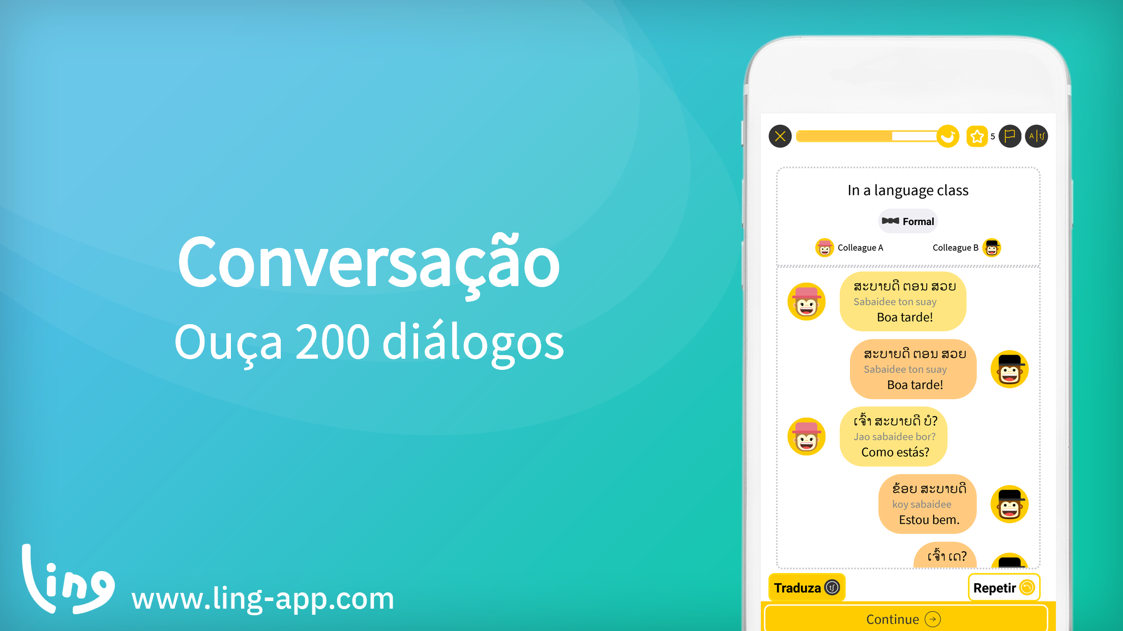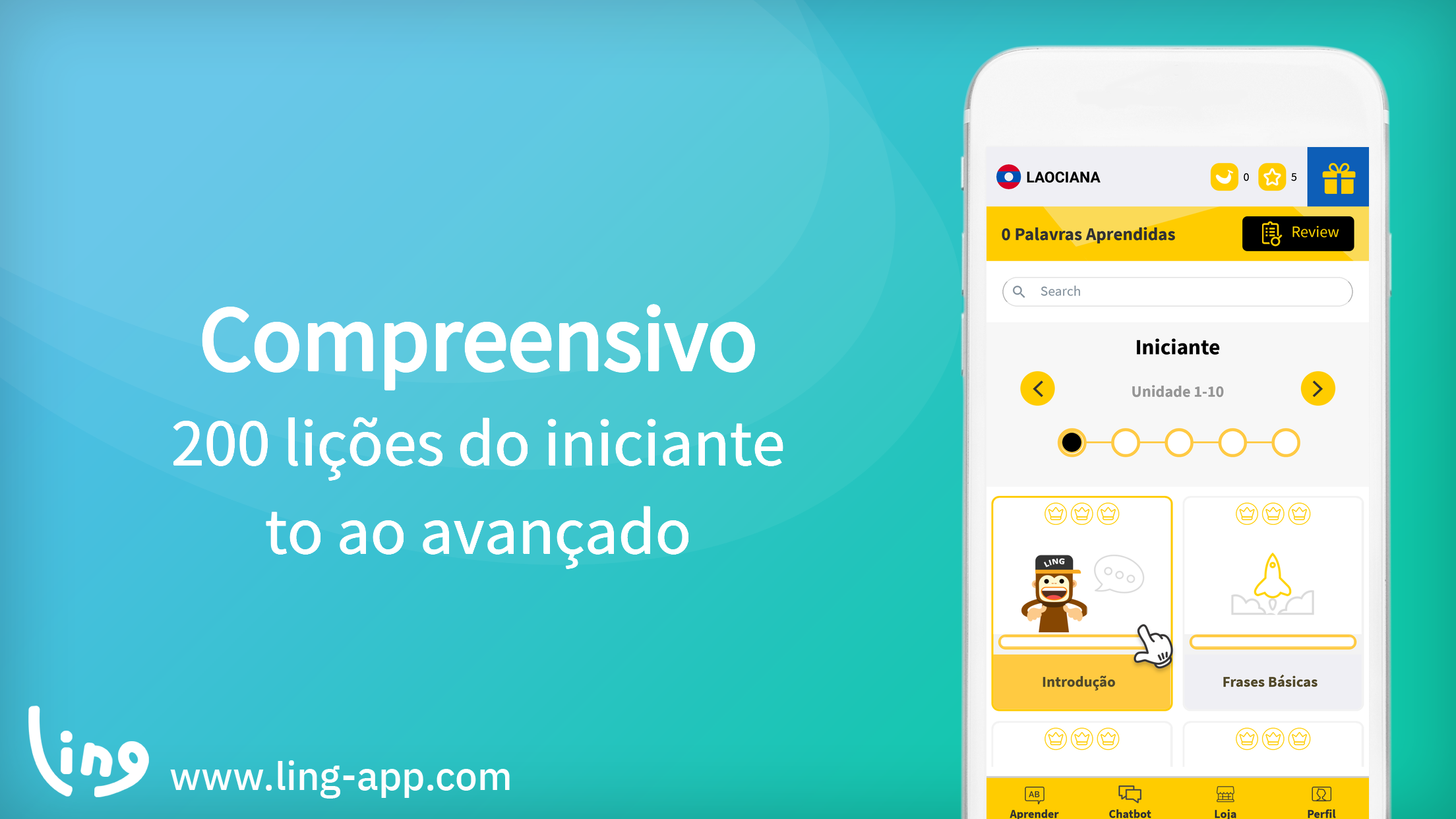 Aprenda Laociana com o Mestre Ling! A nossa aplicação gratuita de aprendizagem de idiomas Laociana foi projetado para tornar a aprendizagem Laociana o mais fácil e divertido possível! Usando uma variedade de minijogos e técnicas de aprendizagem interativas, vai poder mergulhar no idioma Laociana usando apenas o seu smartphone! Se é um novato completo e não conhece nenhuma Laociana palavra e quer aprender o básico do idioma, ou se já é bastante fluente e quer aprender Laociana avançado ou aprimorar o seu conhecimento - Ling ajuda-o! As aulas de idiomas Laociana tradicionais podem ser sem graça e nada divertidas. Na Ling, divertimos o processo de aprendizagem usando quebra-cabeças, jogos, desafios e testes para lhe ensinar a ler, escrever e falar Laociana! -------------------------------------------------- ----- OS NOSSOS LÍNGUA LAOCIANA MINI JOGOS DE ENSINO... -------------------------------------------------- ----- - Flashcards - Testes de palavras - Combine imagens com a palavra correspondente - Ordene as frases na ordem correta - Prática de escrita usando o dedo e o ecrã do smartphone - Complete a frase inacabada ... E muito, muito mais! Com tantos minijogos, desafios, questionários e quebra-cabeças diferentes para lhe ensinar Laociana, vai ter horas de diversão a aprender um novo idioma. Pode não parecer aprendizagem! -------------------------------- LING - DESTAQUES -------------------------------- - Interface amigável é fácil de navegar - Cursos individuais que abrangem diferentes aspetos da língua Laociana - Cursos para todos os níveis de fluência, do iniciante ao mais avançado - Mini-jogos, flashcards, desafios e jogos interativos para o ajudar a aprender muito mais rápido - Aprenda Laociana usando uma aplicação criada por nativos Laociana - Avalie-se em Laociana fala e pronúncia - Aprenda gramática útil Laociana enquanto joga jogos divertidos - Aprenda a escrever os alfabetos Laociana - Aprenda a falar sobre vários tópicos diferentes