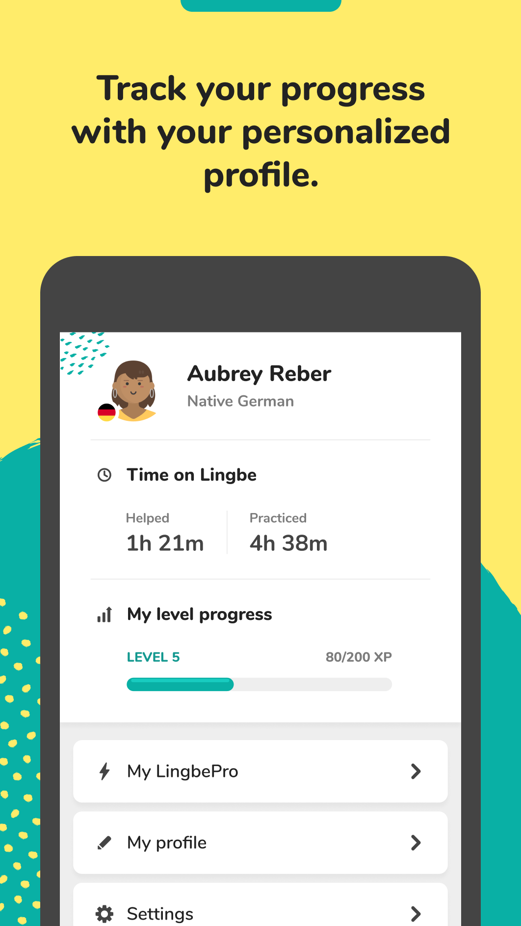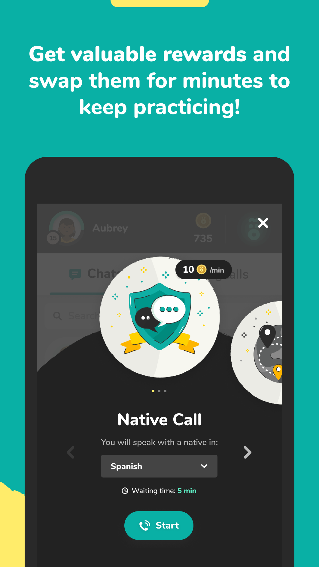 * Recompensas - ajudar os outros a praticar o idioma para subir de nível mais rápido, obter o tempo de prática para falar línguas e desbloquear recompensas exclusivas.