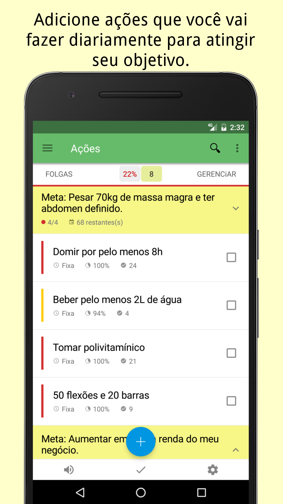 Obs: Esta versão tem um limite de duas metas, mas um número ilimitado de ações.