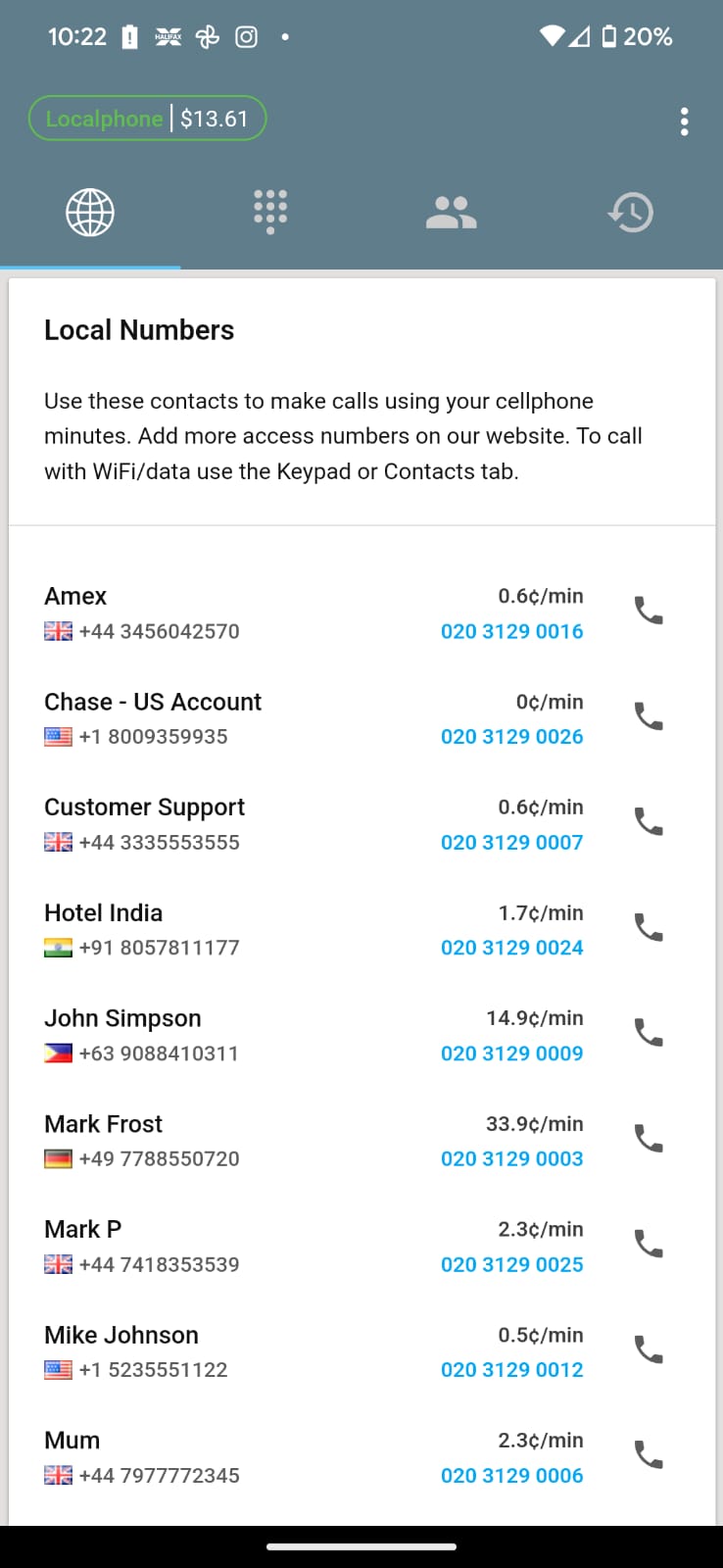 • Acesse facilmente seus contatos de telefone local existentes em seu dispositivo móvel, permitindo que você faça chamadas internacionais acessíveis com apenas um toque