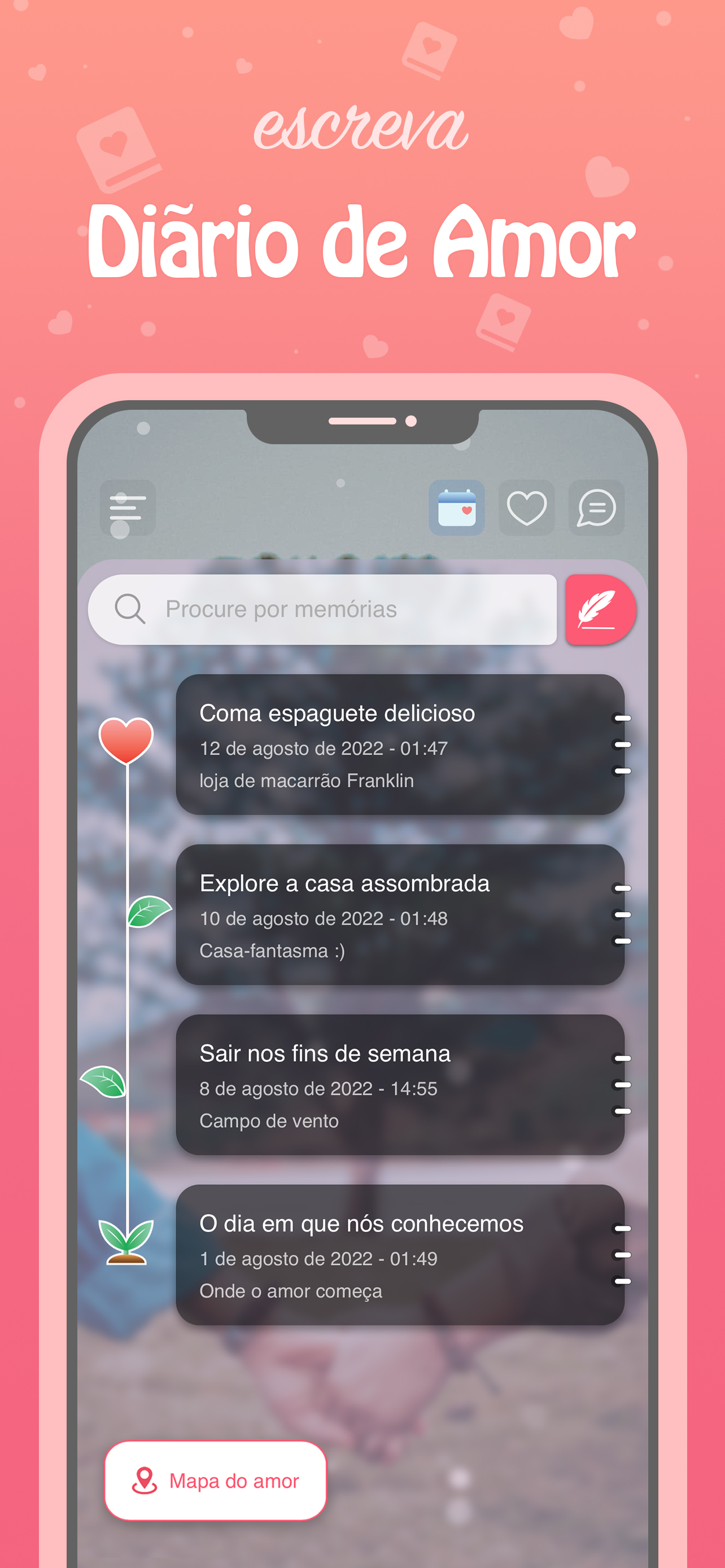 Love Paradise irá ajudá-lo a criar seu próprio mapa do amor. Mapa do amor é um mapa baseado em seus diários criados. Ele mostrará os locais em que você e seu amante estiveram juntos.