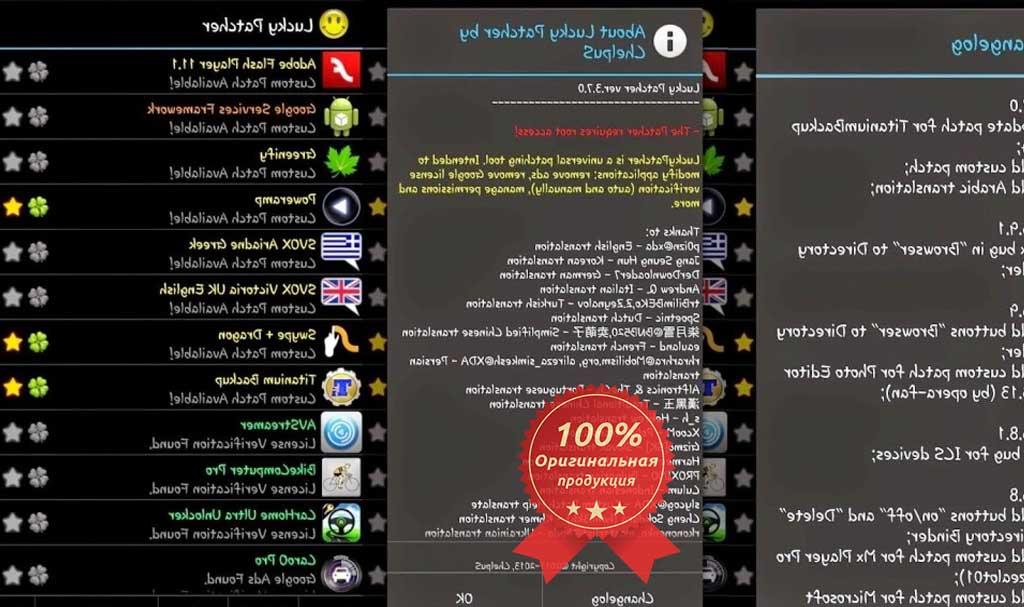 lucky patcher apk, lucky patcher download, apk, download lucky patcher hack Lucky Patcher is a great Android tool to remove ads, modify apps permissions, backup and restore apps, bypass premium applications license verification, and more. To use all features, you need a rooted device. Note: Although stable, functioning of Lucky Patcher can't be 100% guaranteed. So, you are solely responsible for using of the app and any problems that may occur on your device (rebooting loop, unstable system, etc...).