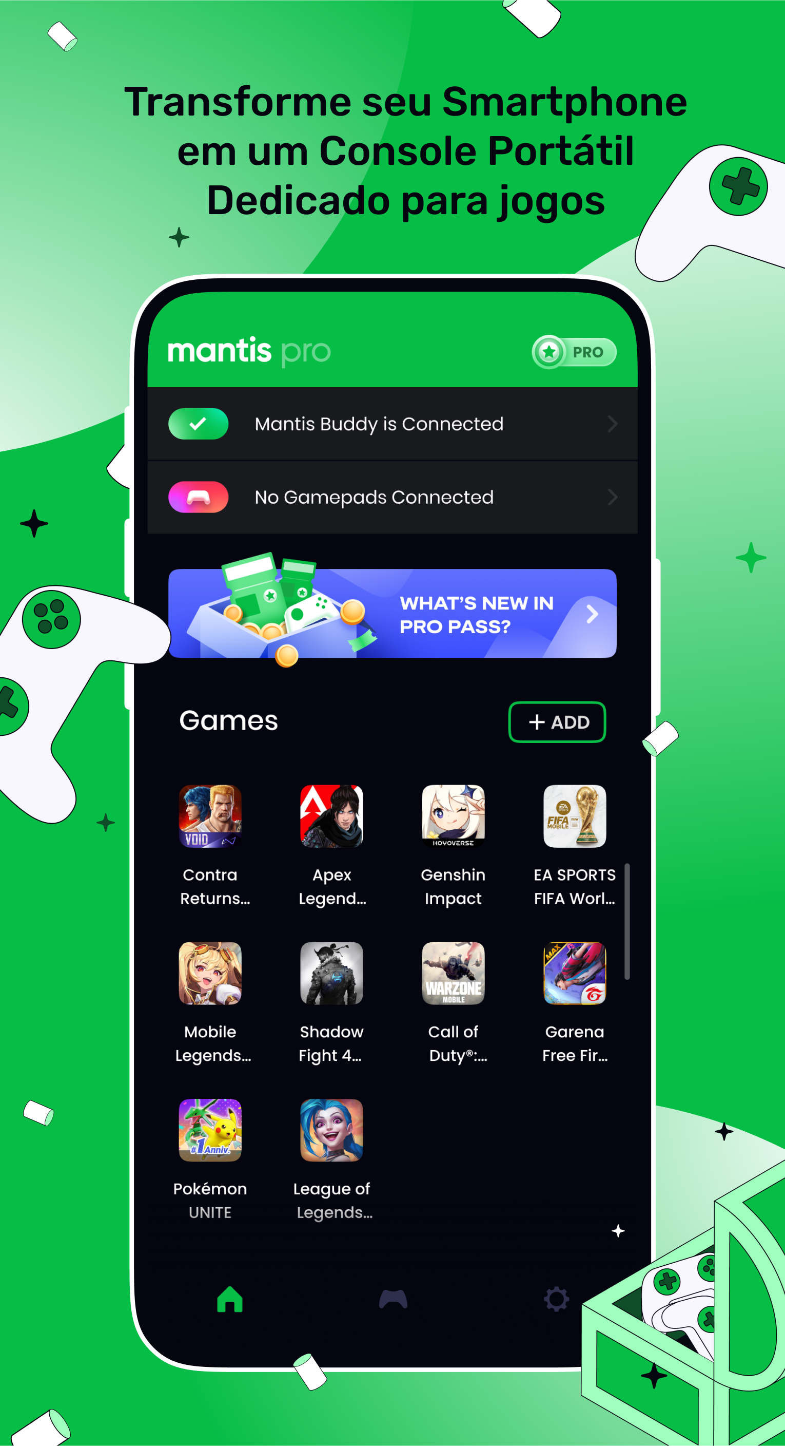 Excelente Compatibilidade com Gamepads 🎮 : O Mantis suporta quase todos os Gamepads suportados pelo Android. Xbox, PS4, Razer, iPega, GameSir, Logitech, etc.