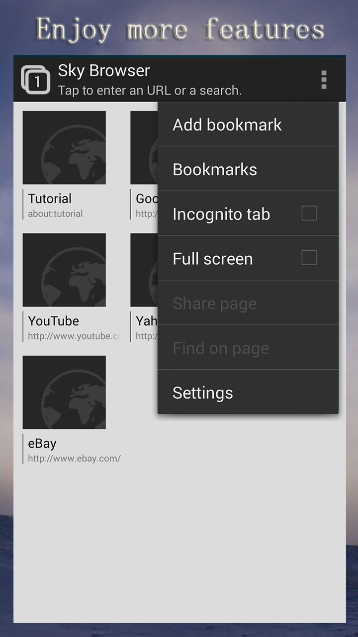 MI Navegador plataforma android melhor navegador Flash 1. Apoio 3. leve, rápido e amigável 3. Apoio a visitar incognito 4. Suporte de tela cheia 5. Apoio plugin (importação marcador) 6. Os motores de busca pode personalizar o url Estilo holo 8.UI 9. Personalizar Início número do cartão e página inicial 10. Sem saída bastidores permanente substancialmente nenhum resíduo