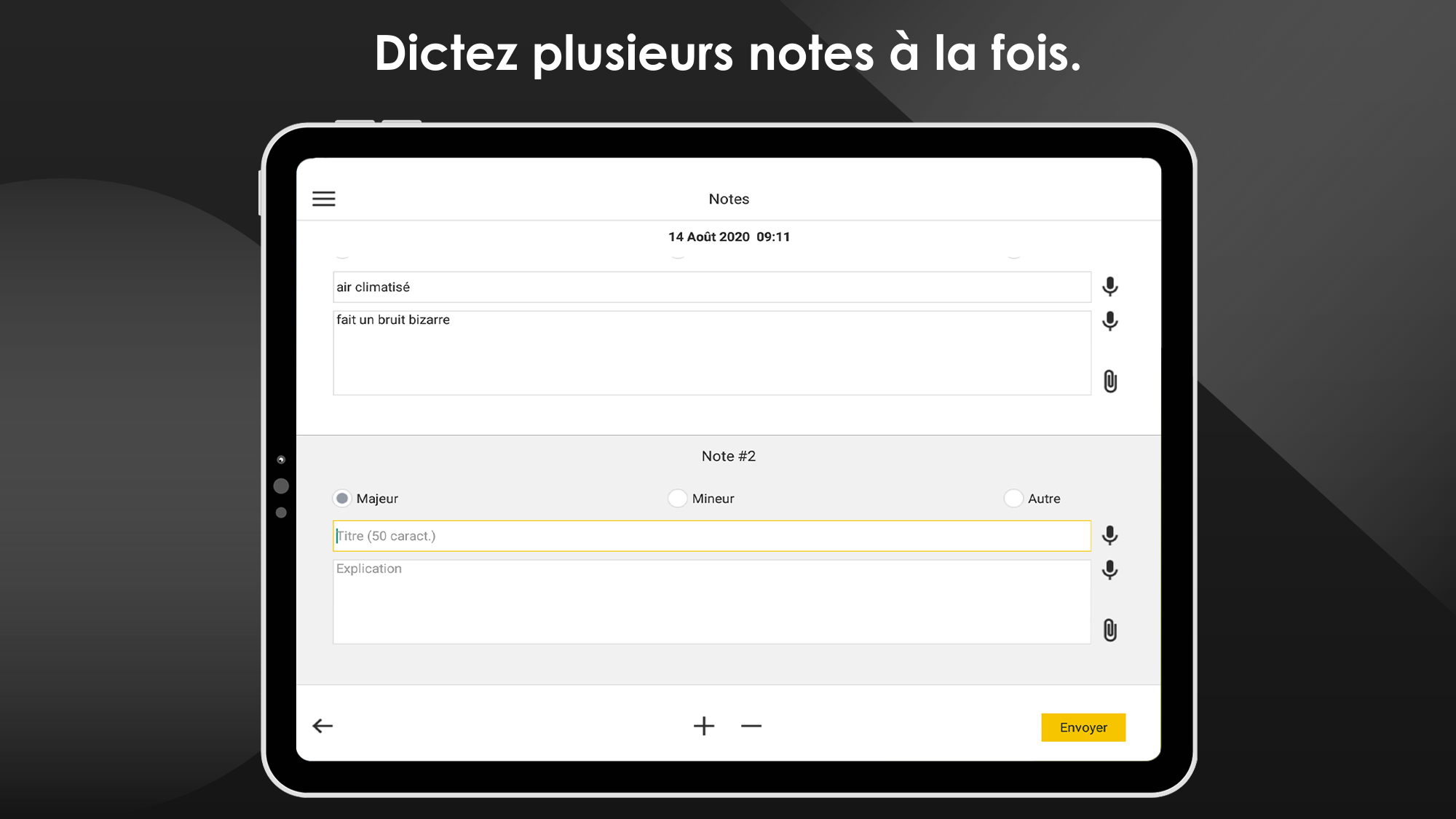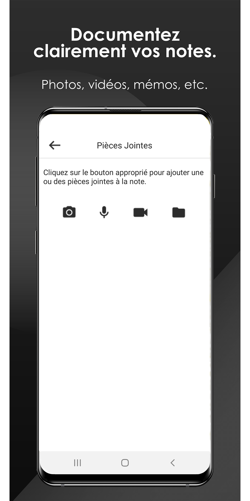 O usuário pode anexar fotos, um vídeo ou até mesmo uma gravação de áudio à nota, permitindo a descrição exata do problema de forma clara e abrangente para eliminar qualquer ambigüidade ou risco de erro.