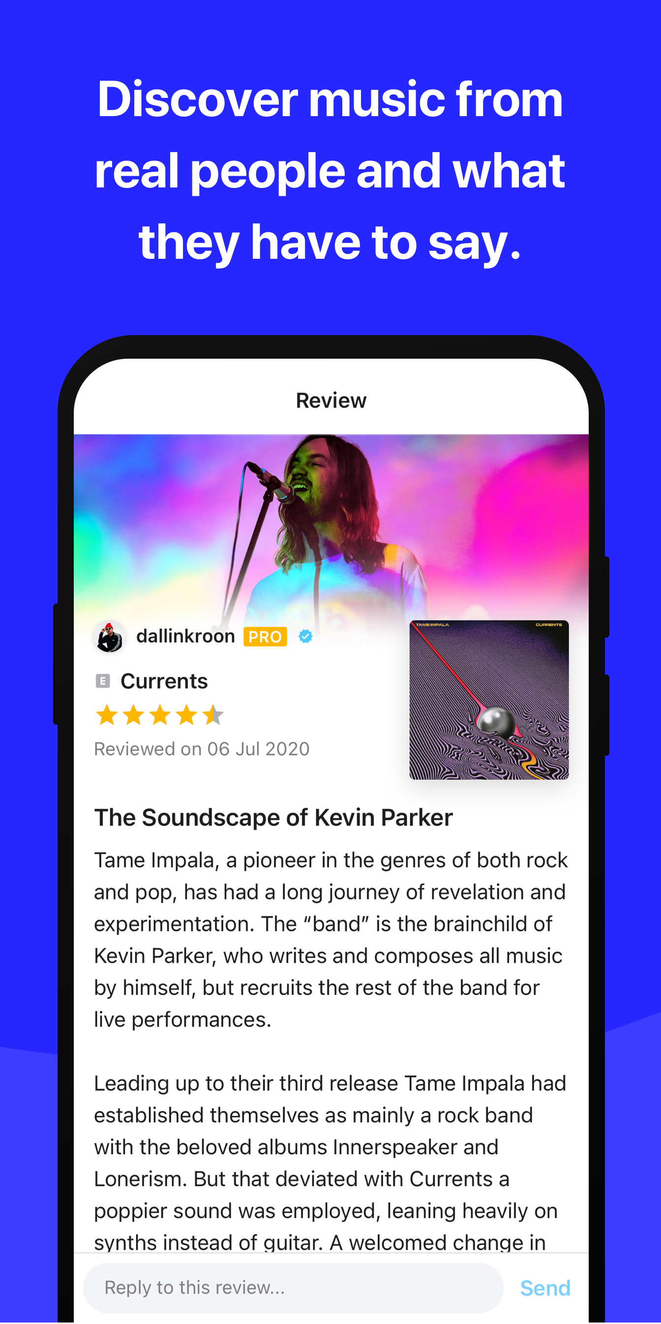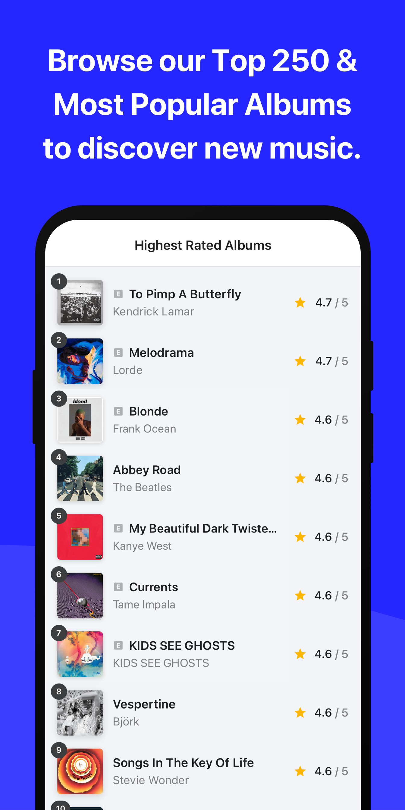 • Descubra novas músicas de pessoas reais. O Musicboard faz a curadoria de um banco de dados de classificações e resenhas da música mundial.