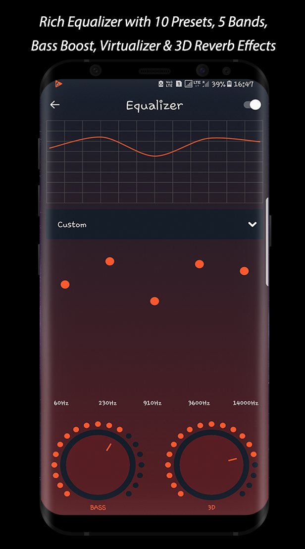 • Built-in Powerful Equalizer. Mais de 5 + estilos de tom de música pré-definidos para sua escolha (Normal, Clássico, Dance, Folk, Heavy, Hip hop, Jazz, Pop, Rock ...).