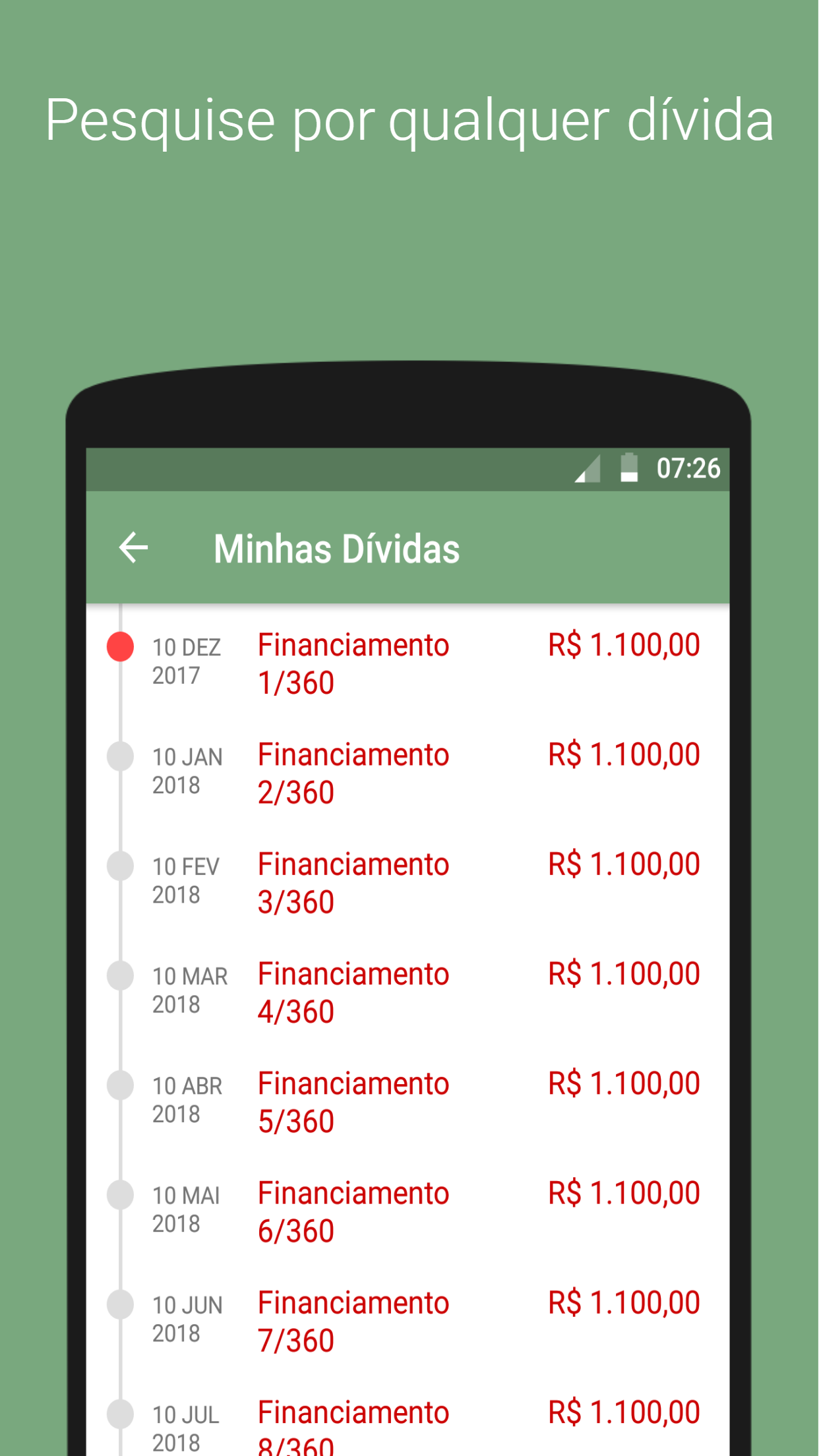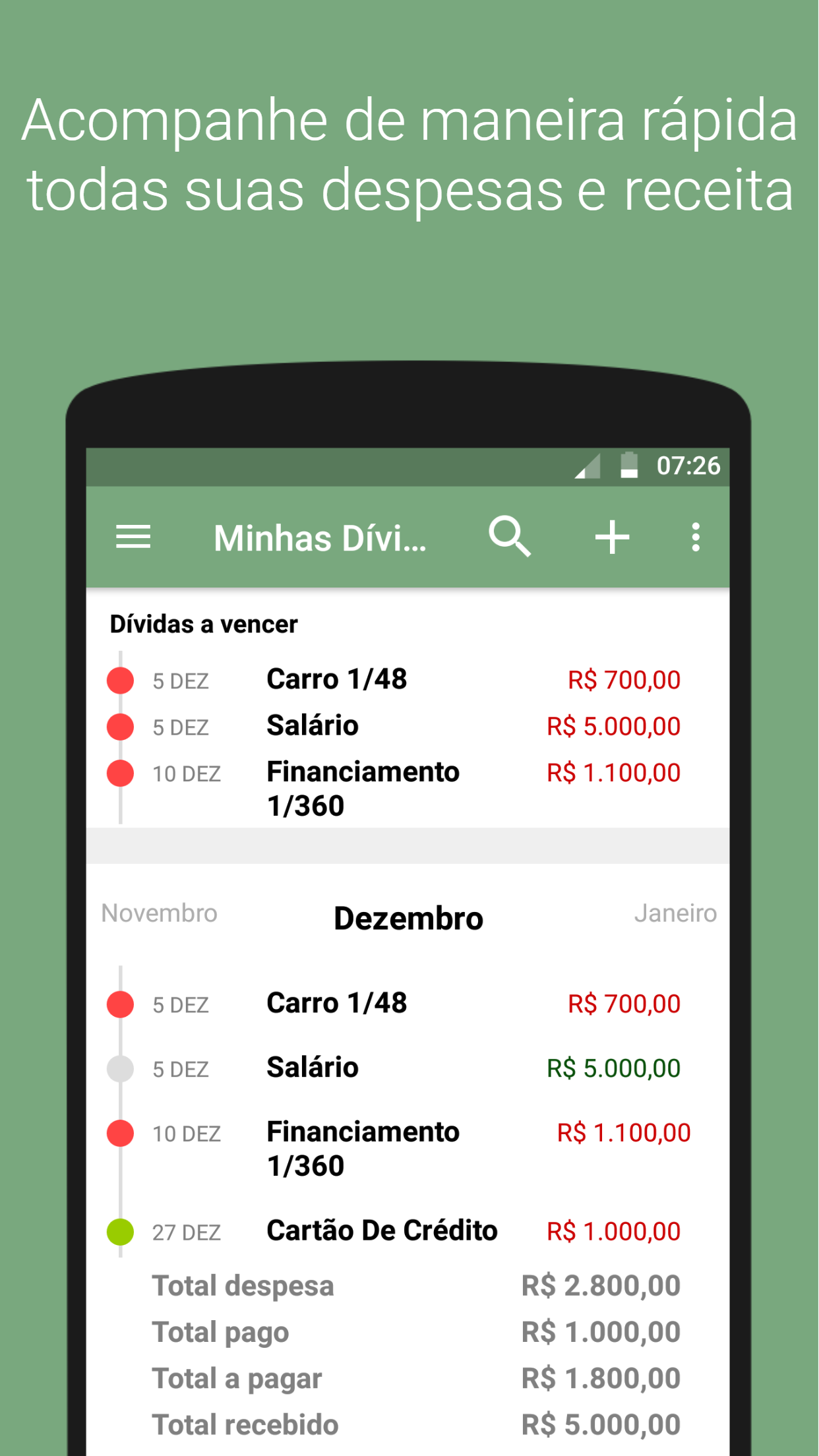Minhas Dívidas é um aplicativo feito para você ter em mãos todo o controle das suas finanças. Totalmente gratuito, minhas dívidas é voltado para finanças pessoais, com foco em simplicidade. Te ajudamos a organizar suas finanças para que você possa ter mais tempo livre. Minhas Dívidas ajuda você a sair daquele seu velho caderno de anotações, das suas planilhas confusas. Sem necessidade de conexão com internet, você pode fazer todas suas consultas e anotações que assim que conectar, todas suas informações vão ser salvas automaticamente. Mesmo que troque de aparelhos, é só realizar login que todas as informações vão ser carregadas Funcionalidades: * Cadastro de receita e despesas * Visualize rapidamente todas suas dívidas mês a mês * Veja sempre as próximas 3 dívidas para não ficar atrasar * Notificações de alerta sempre que uma dívida está próximo do vencimento * Configuração das notificações de alerta * Gráficos de receita e despesas * Pesquise suas dívidas ou receita * Backup de todas suas dívidas Facebook: https://www.facebook.com/minhasdividasapp/
