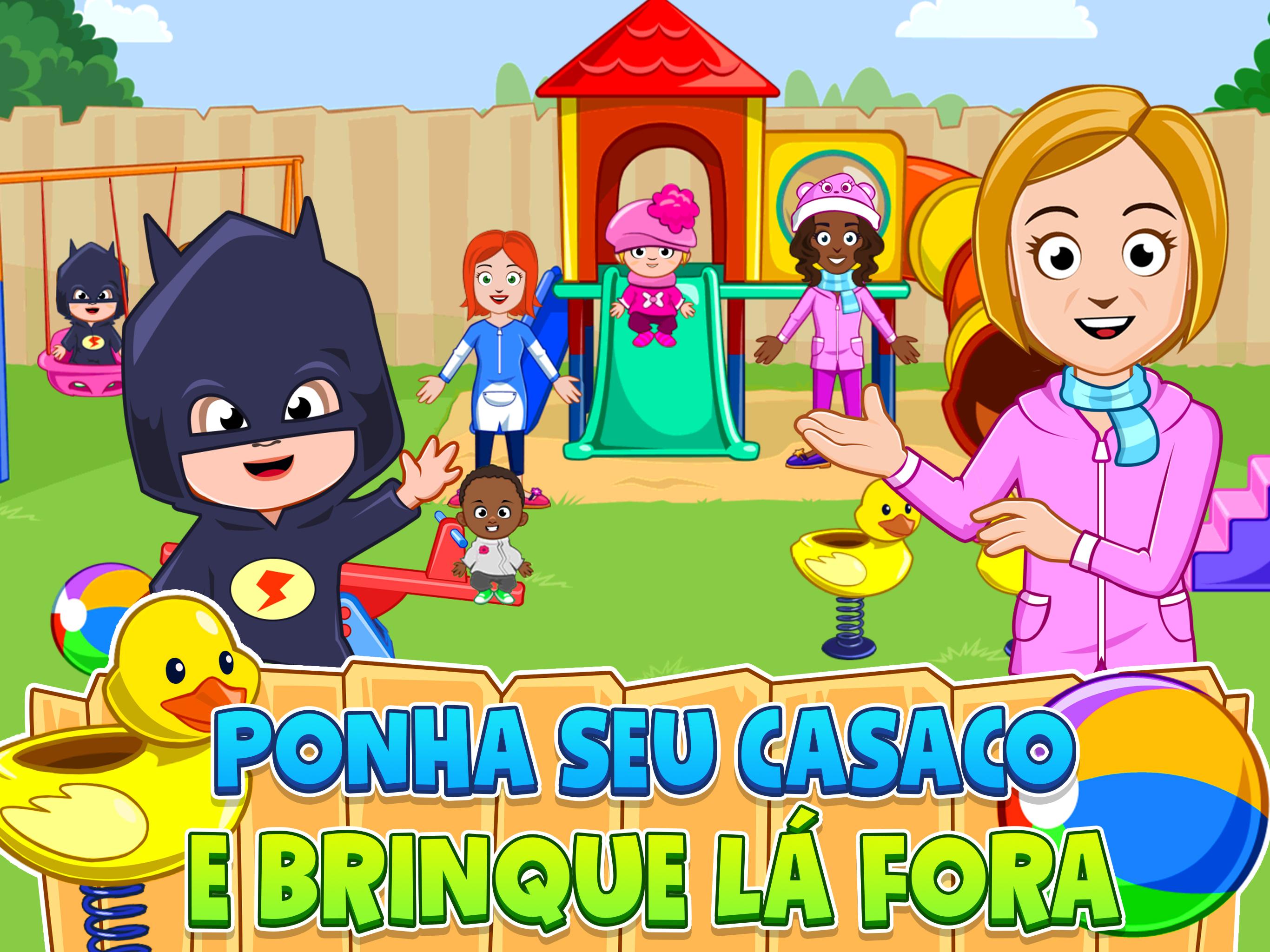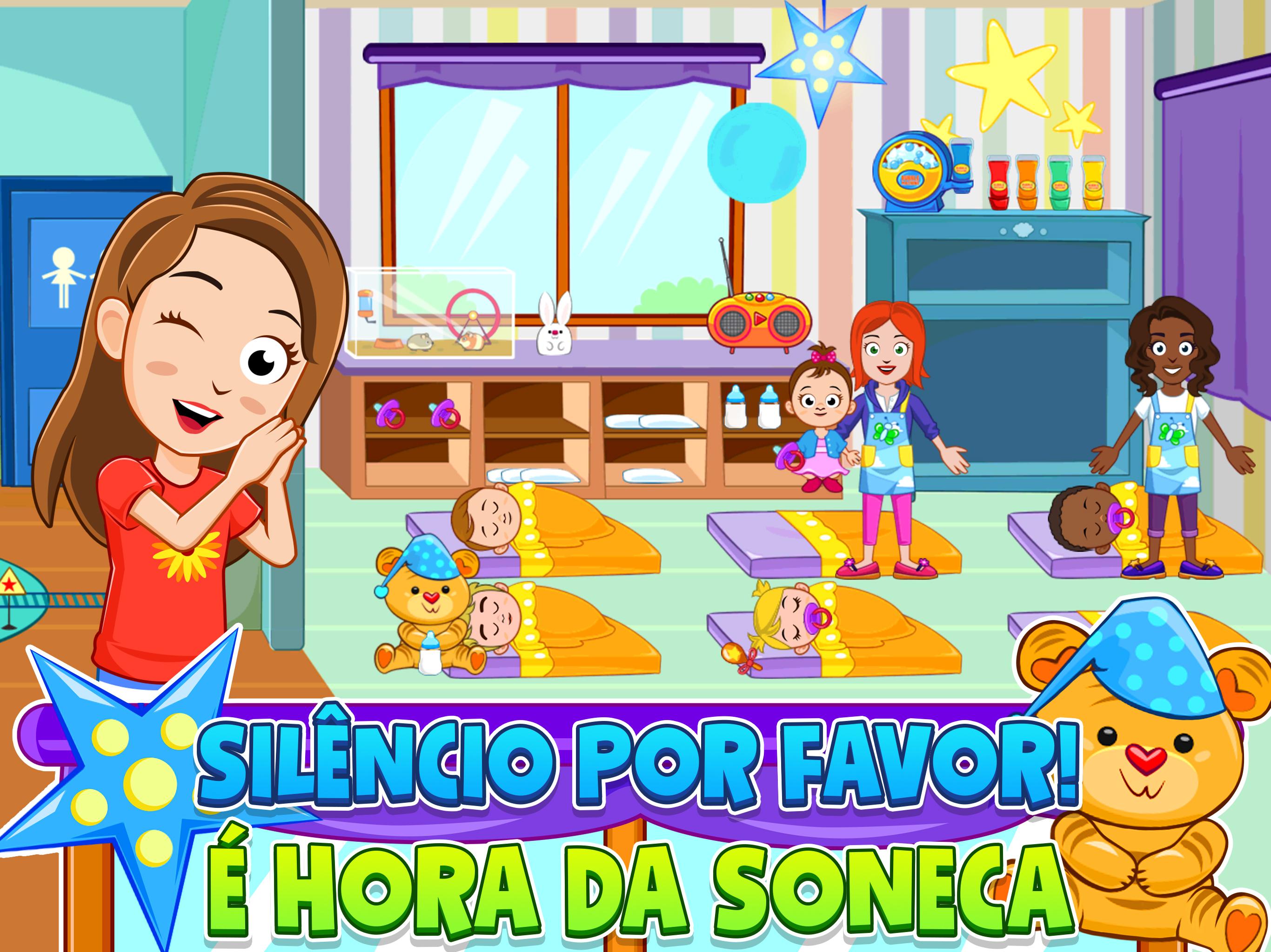 O novo My Town: Creche é lugar onde você pode brincar e cuidar de 6 lindos bebês na creche. Ponha-os para dormir, vista-os para passear no jardim e divirta-se com as 4 estações do ano! NOVO RECURSO ADICIONADO - ESTAÇÕES Você prefere o verão? Ou inverno? Basta acertar o ponteiro do relógio acima da porta e dar uma voltinha. Cada estação tem uma coleção de roupas exclusivas, chapéus e casacos para todos os bebês! JOGUE, IMAGINE, DESCUBRA Com muitos ambientes, atividades e roupas, este jogo irá soltar a imaginação de qualquer criança, dando a ela horas infindáveis de jogabilidade criativa diferente da anterior. DE QUE SE TRATAM OS JOGOS DO MY TOWN? Nossos jogos consistem de locais virtuais no My Town, locais como um posto policial, casa de família, hospital, praia e claro, a creche para bebês. Damos às crianças um mundo virtual onde elas possam brincar de faz-de-conta com segurança e sem anúncios ou compras dentro do app!. NOVA ATUALIZAÇÃO EM BREVE Para tornar os nossos jogos incríveis, continuamos a fazer atualizações com novos conteúdos, modificações e correções, se necessárias. Nossa próxima atualização terá muito mais brinquedos e comidas para a cozinha da creche DESTAQUES DO JOGO: - 12 personagens, incluindo 6 bebês fofos, 2 professores de creche, mãe, pai, irmã e irmão. - 6 diferentes locais para descobrir e brincar desde calabouços a um heliporto. - Mais de 900 sons e itens diferentes - Quatro estações! Verão, inverno, outono e primavera + roupas para cada estação! - A melhor gaiola de hamster para você cuidar e decorar! - Sem anúncios ou compras dentro do app - Sem limite de tempo, pontos de tensão ou pontuações altas a bater. - Cada jogo é diferente. * Recomendado por professores da pré-escola, fonoaudiólogos e pais * Criado sob a orientação de psicólogos de crianças. * Feito para crianças que jogam sozinho ou com amigos e família juntos NÃO SEJA TÍMIDO! Você pode facilmente entrar em contato conosco no Facebook ou no Twitter para nos informar o que você gostaria de mudar, adicionar ou inventar mesmo que seja só para você. Prometemos ler todas as mensagens e responder. Deixe-nos saber qual parte do My Town você gostaria que nos criássemos, o que falta e o qual a sua sugestão. Para compartilhar suas opiniões e sugestões conosco, venha aqui Facebook - https://www.facebook.com/mytowngames Twitter - https://twitter.com/mytowngames