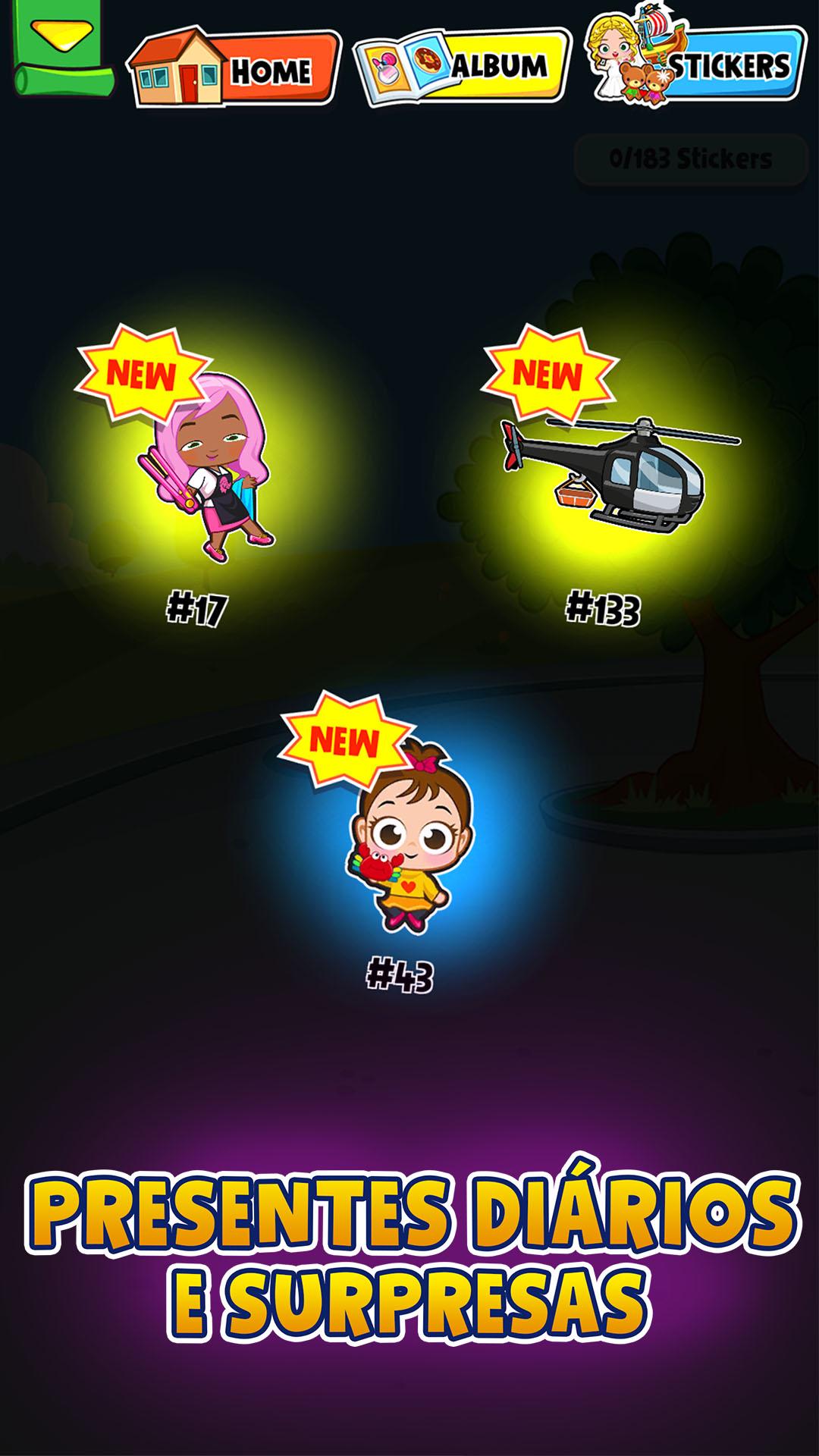 Baixe o jogo de colecionadores oficial My Town Livro de Figurinhas. Colecione várias figurinhas iradas, complete todas as 21 páginas do álbum, ganhe pacotes de figurinhas e surpresas DIARIAMENTE, troque e negocie cartas com os amigos. Você pode combinar o tema ao relevante jogo My Town? Visite diariamente para ganhar os pacotes de figurinhas para completar o álbum e descobrir o tema. Conheça o hair stylist, complete o tema de casamento, negocie com amigos para conseguir figurinhas raras que você precisa! Destaques do Jogo My Town Álbum de Figurinhas oficial: - Colecione todos os seus personagens e temas favoritos do My Town - Ganhe pacotes de figurinhas diariamente. Novas figurinhas todos os dias! - 21 páginas de álbum diferentes para completar! - Centenas de figurinhas para colecionar - Complete a pagina de um álbum para desbloquear animações bacanas - Envie e receba cartas de seus amigos AVISO: Enquanto o aplicativo for gratuito para baixar, alguns conteúdos adicionais podem ser comprados através da compra dentro do app ou obtidos assistindo a anúncios. Se você não quiser ativar estes recursos, desligue o celular e ative o modo avião e/ou cancele a opção de compra dentro do app nos ajustes do aparelho.
