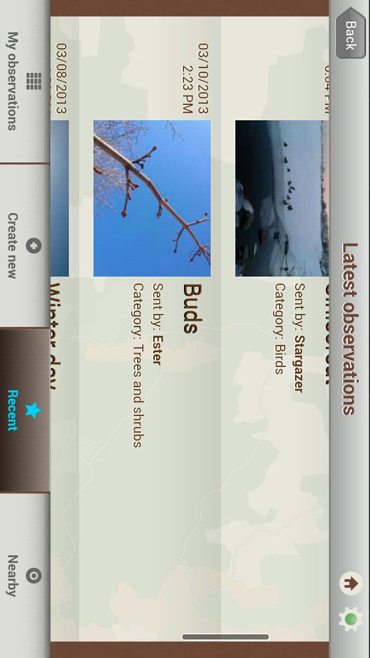 - Save species you’ve identified in your observation diary or share them via Facebook or Twitter